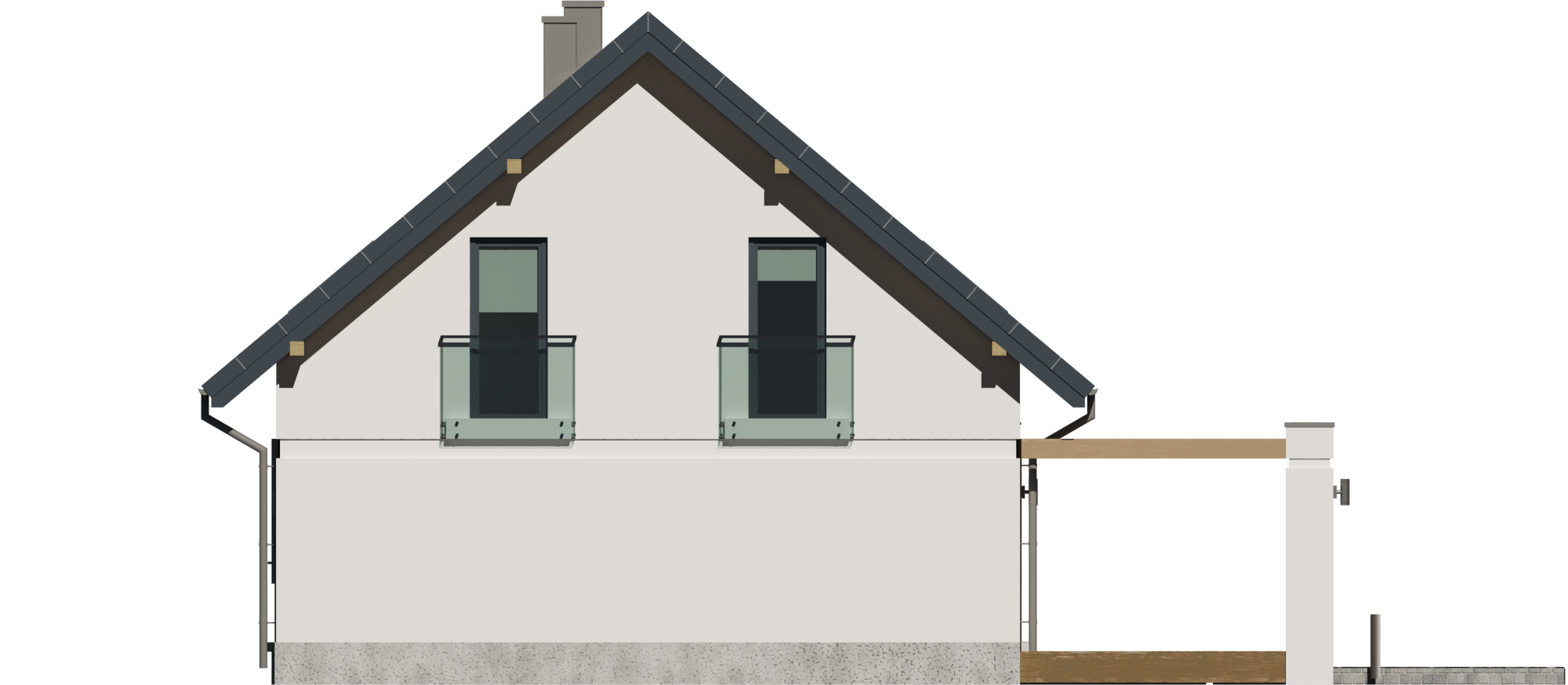 Graficzne opracowanie rzutów poglądowych widocznych na karcie projektu zostało wykonane przez Extradom.pl. Prezentowane przez Extradom.pl wizualizacje wykonane zostały przez autora projektu i należy poczytywać je jedynie za przykład i propozycję wykończenia, wizję architektoniczną autora projektu. Ostateczne wykończenie budynku może nastąpić na wiele sposobów. Szczegółowe rozwiązania zastosowane w oferowanej dokumentacji - w tym również ilość, lokalizacje i wygląd okien, drzwi, kominów - mogą w niewielkim stopniu różnić się od prezentowanej wizualizacji budynku.