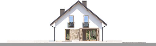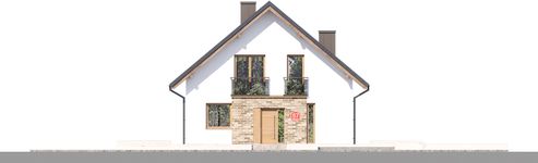 Graficzne opracowanie rzutów poglądowych widocznych na karcie projektu zostało wykonane przez Extradom.pl. Prezentowane przez Extradom.pl wizualizacje wykonane zostały przez autora projektu i należy poczytywać je jedynie za przykład i propozycję wykończenia, wizję architektoniczną autora projektu. Ostateczne wykończenie budynku może nastąpić na wiele sposobów. Szczegółowe rozwiązania zastosowane w oferowanej dokumentacji - w tym również ilość, lokalizacje i wygląd okien, drzwi, kominów - mogą w niewielkim stopniu różnić się od prezentowanej wizualizacji budynku.