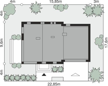 Graficzne opracowanie rzutów poglądowych widocznych na karcie projektu zostało wykonane przez Extradom.pl. Prezentowane przez Extradom.pl wizualizacje wykonane zostały przez autora projektu i należy poczytywać je jedynie za przykład i propozycję wykończenia, wizję architektoniczną autora projektu. Ostateczne wykończenie budynku może nastąpić na wiele sposobów. Szczegółowe rozwiązania zastosowane w oferowanej dokumentacji - w tym również ilość, lokalizacje i wygląd okien, drzwi, kominów - mogą w niewielkim stopniu różnić się od prezentowanej wizualizacji budynku.