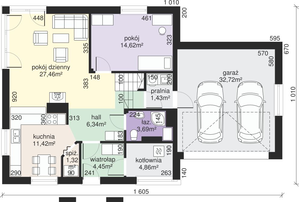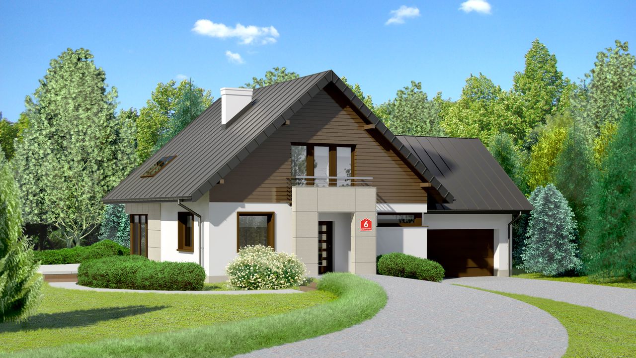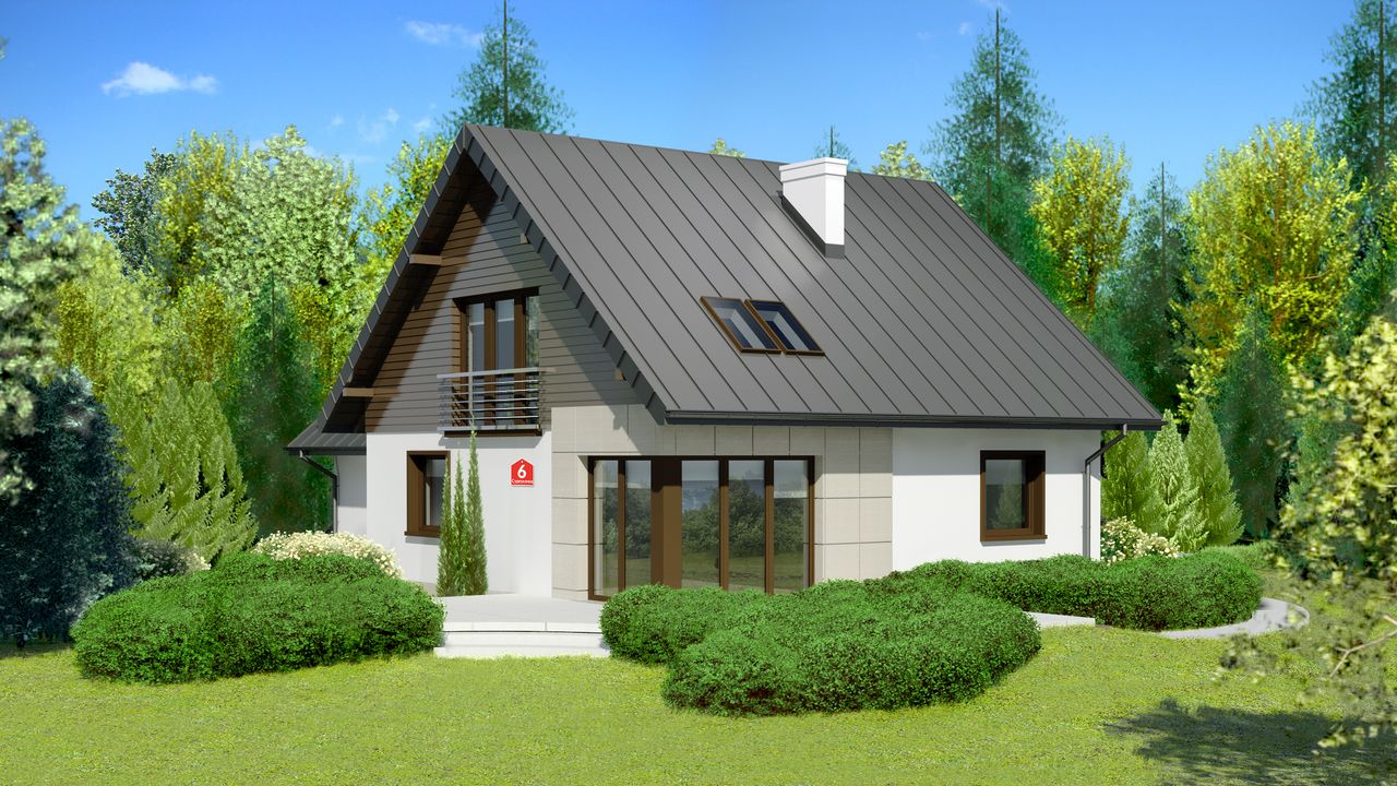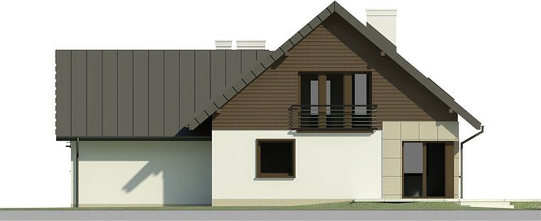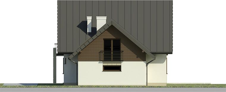 Graficzne opracowanie rzutów poglądowych widocznych na karcie projektu zostało wykonane przez Extradom.pl. Prezentowane przez Extradom.pl wizualizacje wykonane zostały przez autora projektu i należy poczytywać je jedynie za przykład i propozycję wykończenia, wizję architektoniczną autora projektu. Ostateczne wykończenie budynku może nastąpić na wiele sposobów. Szczegółowe rozwiązania zastosowane w oferowanej dokumentacji - w tym również ilość, lokalizacje i wygląd okien, drzwi, kominów - mogą w niewielkim stopniu różnić się od prezentowanej wizualizacji budynku.