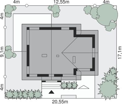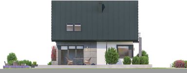 Graficzne opracowanie rzutów poglądowych widocznych na karcie projektu zostało wykonane przez Extradom.pl. Prezentowane przez Extradom.pl wizualizacje wykonane zostały przez autora projektu i należy poczytywać je jedynie za przykład i propozycję wykończenia, wizję architektoniczną autora projektu. Ostateczne wykończenie budynku może nastąpić na wiele sposobów. Szczegółowe rozwiązania zastosowane w oferowanej dokumentacji - w tym również ilość, lokalizacje i wygląd okien, drzwi, kominów - mogą w niewielkim stopniu różnić się od prezentowanej wizualizacji budynku.