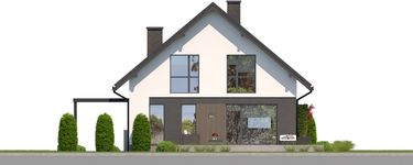 Graficzne opracowanie rzutów poglądowych widocznych na karcie projektu zostało wykonane przez Extradom.pl. Prezentowane przez Extradom.pl wizualizacje wykonane zostały przez autora projektu i należy poczytywać je jedynie za przykład i propozycję wykończenia, wizję architektoniczną autora projektu. Ostateczne wykończenie budynku może nastąpić na wiele sposobów. Szczegółowe rozwiązania zastosowane w oferowanej dokumentacji - w tym również ilość, lokalizacje i wygląd okien, drzwi, kominów - mogą w niewielkim stopniu różnić się od prezentowanej wizualizacji budynku.