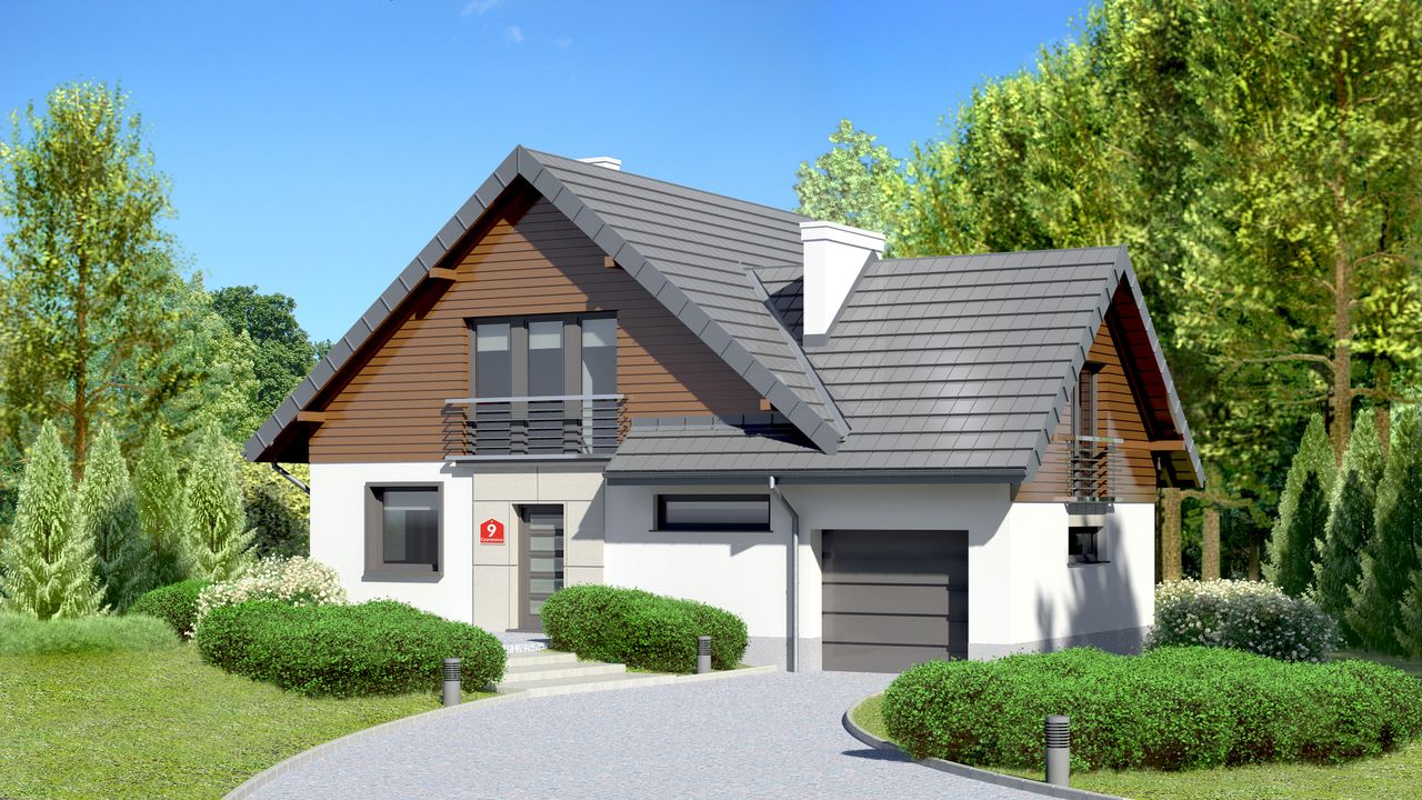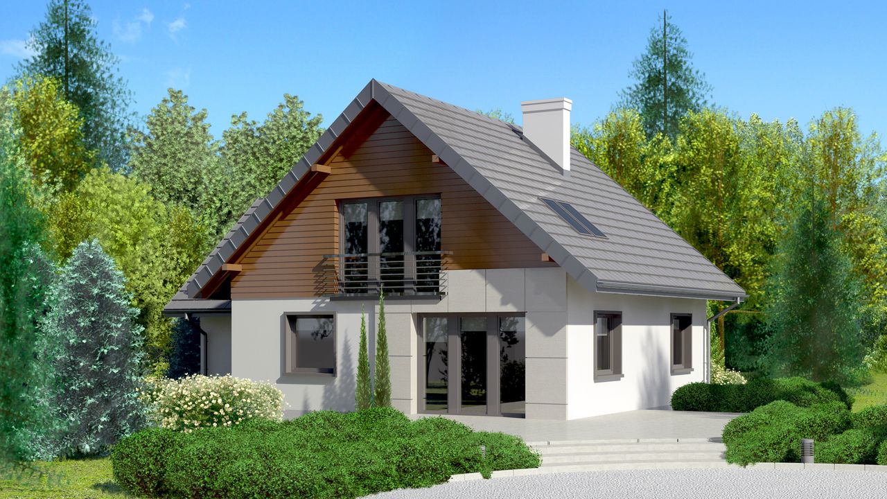 Graficzne opracowanie rzutów poglądowych widocznych na karcie projektu zostało wykonane przez Extradom.pl. Prezentowane przez Extradom.pl wizualizacje wykonane zostały przez autora projektu i należy poczytywać je jedynie za przykład i propozycję wykończenia, wizję architektoniczną autora projektu. Ostateczne wykończenie budynku może nastąpić na wiele sposobów. Szczegółowe rozwiązania zastosowane w oferowanej dokumentacji - w tym również ilość, lokalizacje i wygląd okien, drzwi, kominów - mogą w niewielkim stopniu różnić się od prezentowanej wizualizacji budynku.