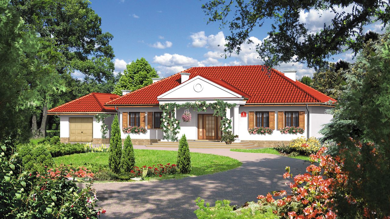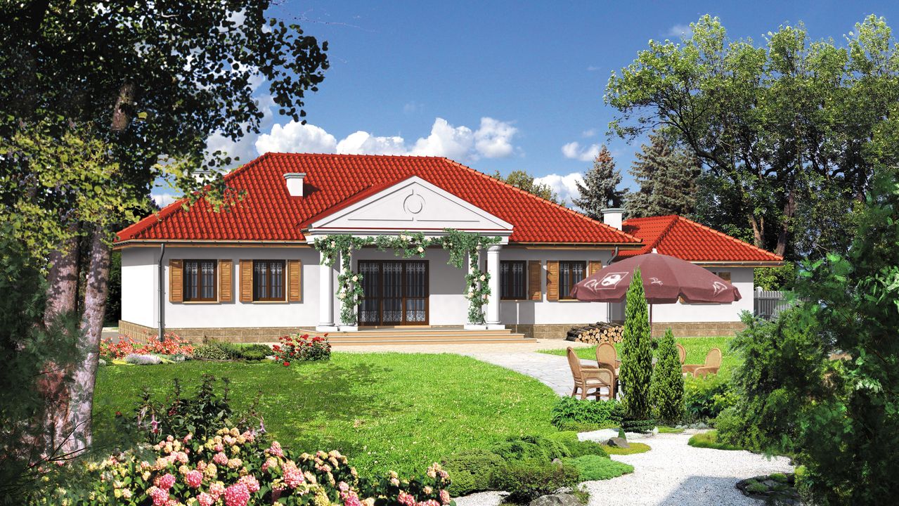 Wybrałem projekt domu Dom przy Dębowej KRK1058, ponieważ spodobał mi się jego wygląd zewnętrzny. Styl budynku, kształt bryły i ozdobne filary bardzo przypadły mi do gustu. Układ pomieszczeń wraz z garażem uwzględnionym przy domu także odpowiadał moim oczekiwaniom. Cała realizacja przebiegła bez żadnych problemów. Koszty budowy i wykończenia domu zależą w głównej mierze od standardu wykonania i muszę przyznać, że w naszym przypadku były one dość wysokie. Ściany zewnętrzne zostały postawione przy użyciu 20cm bloczków Ytong i pokryte 20cm warstwą styropianu. Na dachu zastosowaliśmy dachówkę ceramiczną marki Röben. W kuchni, korytarzu i salonie mamy zainstalowany system ogrzewania podłogowego, zaś w sypialniach zamontowaliśmy grzejniki. Nasza działka jest oddalona od podłącza gazowego, więc zdecydowaliśmy się na umieszczenie w kotłowni pieca z podajnikiem na ekogorszek. W naszym poprzednim domu ogrzewaliśmy drewnem, jednak trzeba przyznać, iż jest ono dość pracochłonne. Palenie ekogoroszkiem jest z pewnością wygodniejsze. W projekcie domu Dom przy Dębowej KRK1058 postanowiłem wprowadzić dwie modyfikacje. Pierwszą z nich było zrezygnowanie ze ścianki działowej między salonem a pokojem po lewej stronie z bezpośrednim wejściem do łazienki. Dzięki temu zyskaliśmy większą część dzienną. Postanowiłem zmienić lokalizację kotłowni i w naszym przypadku znajduje się ona w miejscu pomieszczenia gospodarczego przy garażu. Jej pierwotną powierzchnię przeznaczyliśmy na garderobę. Myślę, że było to bardzo dobre posunięcie, ponieważ nie chciałem, aby kotłownia znajdowała się obok wejścia do domu. Wydobywający się z niej kurz i dym osadzałby się na ścianach w wiatrołapie i wyglądałoby to nieestetycznie. Nasz dom usytuowany jest w ten sposób, iż front znajduje się po stronie zachodniej, a taras mamy na wschód. W godzinach porannych i południowych słońce wpada do części dziennej przez duże okno tarasowe i wtedy jest tam bardzo przyjemnie. Po południu najwięcej światła mamy w sypialniach. Nieco ciemniejszym pomieszczeniem w naszym domu jest kuchnia, jednak nie stanowi to dla nas problemu. Wybór projektu domu parterowego Dom przy Dębowej KRK1058 był dobrą decyzją. Jego metraż jest optymalny dla 3-4 osobowej rodziny. Cały budynek rewelacyjnie prezentuje się na działce. Polecam i pozdrawiam.