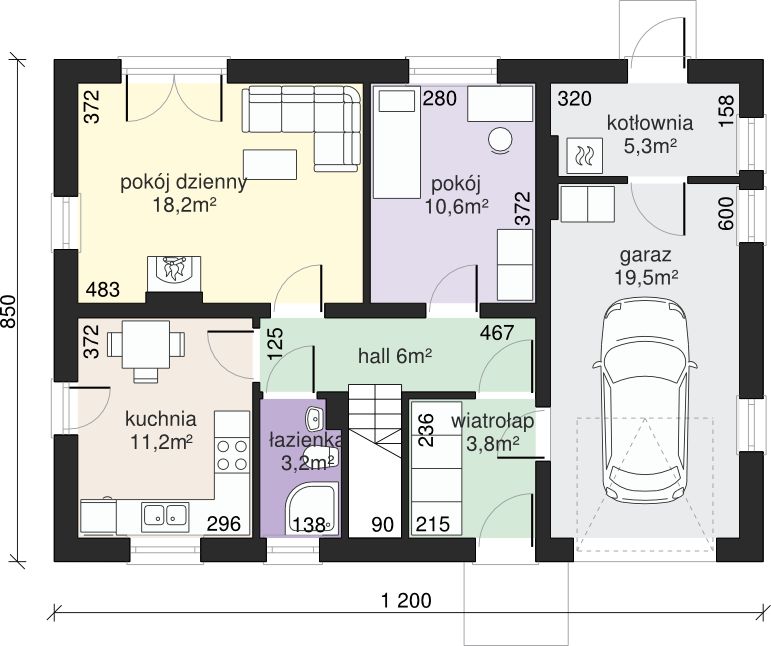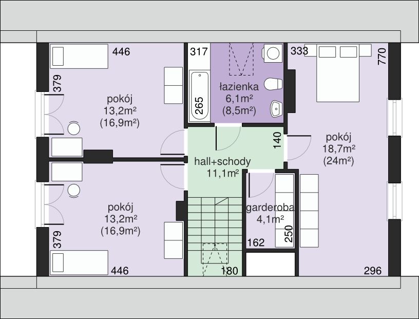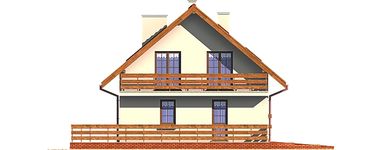 Graficzne opracowanie rzutów poglądowych widocznych na karcie projektu zostało wykonane przez Extradom.pl. Prezentowane przez Extradom.pl wizualizacje wykonane zostały przez autora projektu i należy poczytywać je jedynie za przykład i propozycję wykończenia, wizję architektoniczną autora projektu. Ostateczne wykończenie budynku może nastąpić na wiele sposobów. Szczegółowe rozwiązania zastosowane w oferowanej dokumentacji - w tym również ilość, lokalizacje i wygląd okien, drzwi, kominów - mogą w niewielkim stopniu różnić się od prezentowanej wizualizacji budynku.