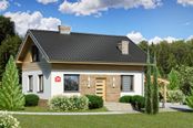 Graficzne opracowanie rzutów poglądowych widocznych na karcie projektu zostało wykonane przez Extradom.pl. Prezentowane przez Extradom.pl wizualizacje wykonane zostały przez autora projektu i należy poczytywać je jedynie za przykład i propozycję wykończenia, wizję architektoniczną autora projektu. Ostateczne wykończenie budynku może nastąpić na wiele sposobów. Szczegółowe rozwiązania zastosowane w oferowanej dokumentacji - w tym również ilość, lokalizacje i wygląd okien, drzwi, kominów - mogą w niewielkim stopniu różnić się od prezentowanej wizualizacji budynku.