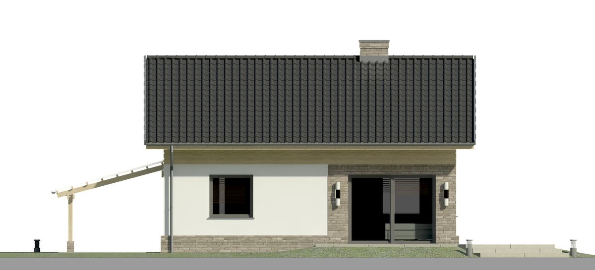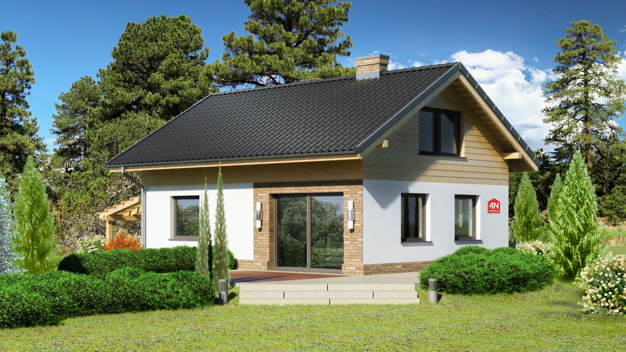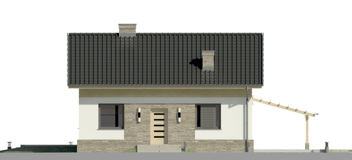 Graficzne opracowanie rzutów poglądowych widocznych na karcie projektu zostało wykonane przez Extradom.pl. Prezentowane przez Extradom.pl wizualizacje wykonane zostały przez autora projektu i należy poczytywać je jedynie za przykład i propozycję wykończenia, wizję architektoniczną autora projektu. Ostateczne wykończenie budynku może nastąpić na wiele sposobów. Szczegółowe rozwiązania zastosowane w oferowanej dokumentacji - w tym również ilość, lokalizacje i wygląd okien, drzwi, kominów - mogą w niewielkim stopniu różnić się od prezentowanej wizualizacji budynku.