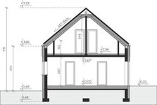 Graficzne opracowanie rzutów poglądowych widocznych na karcie projektu zostało wykonane przez Extradom.pl. Prezentowane przez Extradom.pl wizualizacje wykonane zostały przez autora projektu i należy poczytywać je jedynie za przykład i propozycję wykończenia, wizję architektoniczną autora projektu. Ostateczne wykończenie budynku może nastąpić na wiele sposobów. Szczegółowe rozwiązania zastosowane w oferowanej dokumentacji - w tym również ilość, lokalizacje i wygląd okien, drzwi, kominów - mogą w niewielkim stopniu różnić się od prezentowanej wizualizacji budynku.
