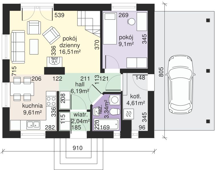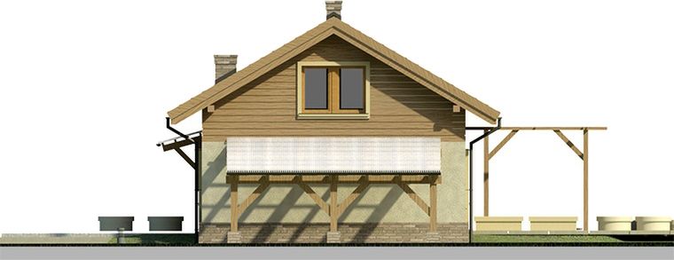 Graficzne opracowanie rzutów poglądowych widocznych na karcie projektu zostało wykonane przez Extradom.pl. Prezentowane przez Extradom.pl wizualizacje wykonane zostały przez autora projektu i należy poczytywać je jedynie za przykład i propozycję wykończenia, wizję architektoniczną autora projektu. Ostateczne wykończenie budynku może nastąpić na wiele sposobów. Szczegółowe rozwiązania zastosowane w oferowanej dokumentacji - w tym również ilość, lokalizacje i wygląd okien, drzwi, kominów - mogą w niewielkim stopniu różnić się od prezentowanej wizualizacji budynku.