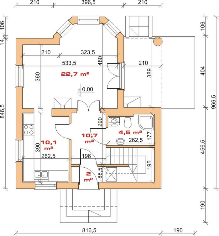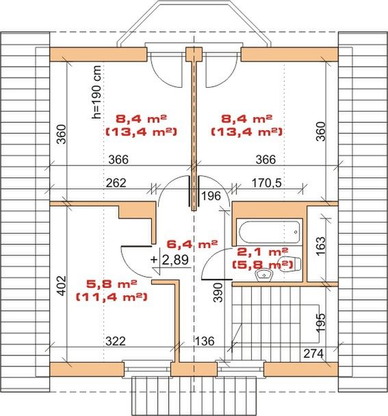 Ściany: bloczki betonu komórkowego 36,5 cm. Ściany nośne: bloczki betonu komórkowego 24 cm. Strop: monolityczny żelbetowy. Pokrycie dachu: dachówka ceramiczna lub betonowa.