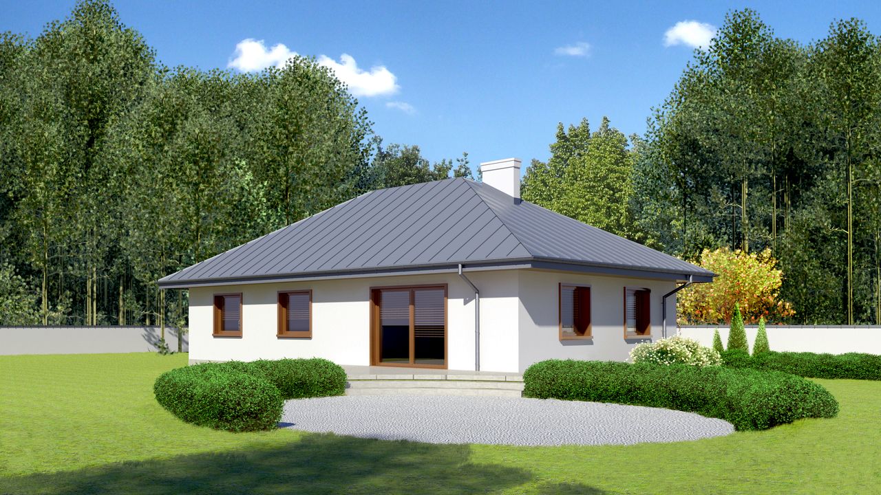 Spośród wszystkich oglądanych przeze mnie projektów ostatecznie zdecydowałem się na Dom przy Jaśminowej 2 KRK1219, który bardzo mi się spodobał. Od początku zależało mi na tym, aby wszystkie pomieszczenia w nowym domu znajdowały się na jednej kondygnacji, a dodatkowo w tym przypadku ich rozmieszczenie odpowiadało moim oczekiwaniom.Realizacja odbyła się sprawnie i nie mieliśmy podczas niej żadnych problemów. Jedyną trudność dla fachowców stanowiło wykonanie konstrukcji dachu, która jest dosyć nietypowa, ale na pozostałych etapach budowy ze wszystkim świetnie sobie poradzili. Pierwsze prace rozpoczęliśmy dwa lata temu, a do całkowitego zakończenia inwestycji zostały nam już ostatnie wykończenia.Do wymurowania ścian użyliśmy silikatowych bloczków, a dach pokryliśmy blachodachówką. Strop wykonaliśmy na zasadzie łączenia stalowych belek z konstrukcją drewnianą. Trudno odnieść mi się do poprawności kosztorysu, ponieważ zdecydowałem się na budowę systemem gospodarczym i tym samym wiele zaoszczędziłem na robociźnie. Większość prac wykonywałem samodzielnie, zaś fachowców zatrudniałem jedynie do bardziej skomplikowanych, jak konstrukcja dachu czy instalacje hydrauliczne.Do oryginalnego projektu Dom przy Jaśminowej 2 KRK1219 wprowadziłem pewne zmiany. Główna polegała na powiększeniu domu poprzez wydłużenie jego tylej części (strefy mieszkalnej bez garażu) o 3 metry. Dzięki temu udało nam się wygospodarować jeszcze jeden, dodatkowy pokój o niedużych rozmiarach, który przeznaczyliśmy na gabinet. Kosztem jednego z pokoi wykonaliśmy garderobę z wejściem od strony sypialni. Świetnym pomysłem było również przyłączenie powierzchni toalety do łazienki, która teraz jest naprawdę przestronna. Z kolei przewidziany przez architekta hall jest w oryginale zdecydowanie za duży i niepotrzebnie ujmuje miejsca pomieszczeniom użytkowym. Z tego względu kosztem części jego powierzchni wygospodarowaliśmy oddzielne, nieduże WC. Dodatkowo, połowę kotłowni przeznaczyłem na zrobienie praktycznej spiżarki.Po wprowadzonych modyfikacjach projekt domu parterowego Dom przy Jaśminowej 2 KRK1219 spełnia moje oczekiwania. Do wewnętrznego układu nie mam zastrzeżeń, aczkolwiek na chwilę obecną myślę, iż salon mógłby być jednak nieco większy. To właśnie w nim, a nie w kuchni postawiliśmy stół jadalniany z krzesłami, więc część typowo wypoczynkowa wyszła dosyć mała. Pozdrawiam.
