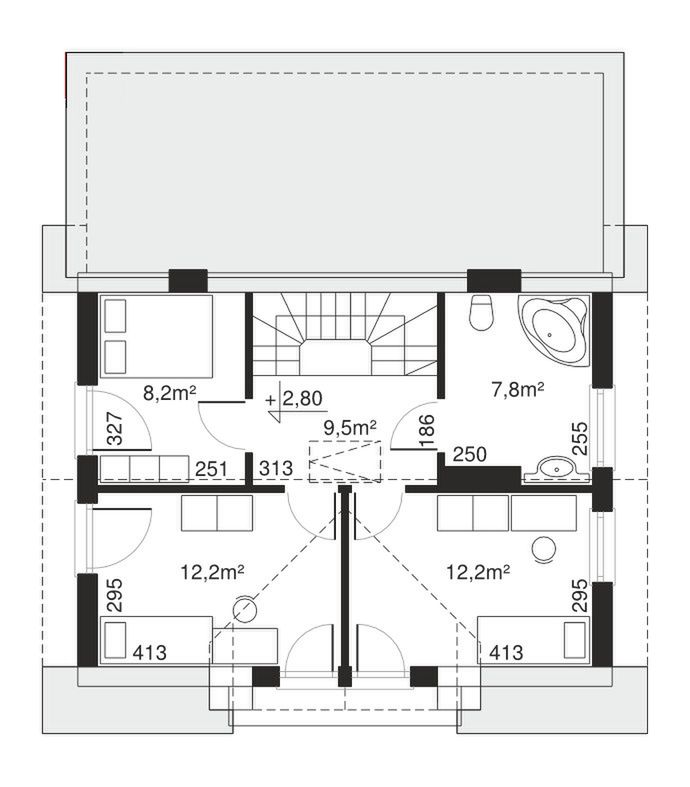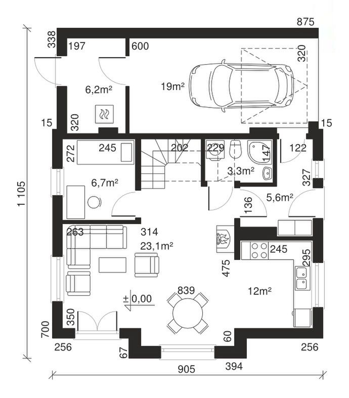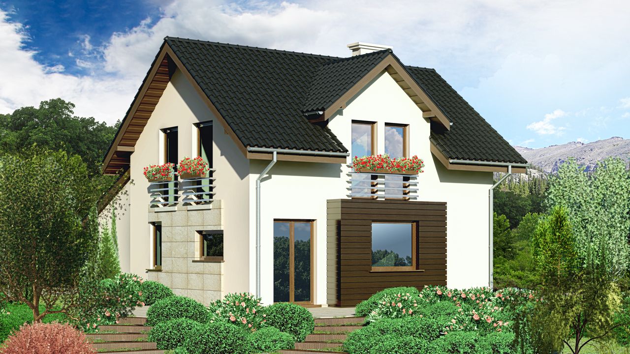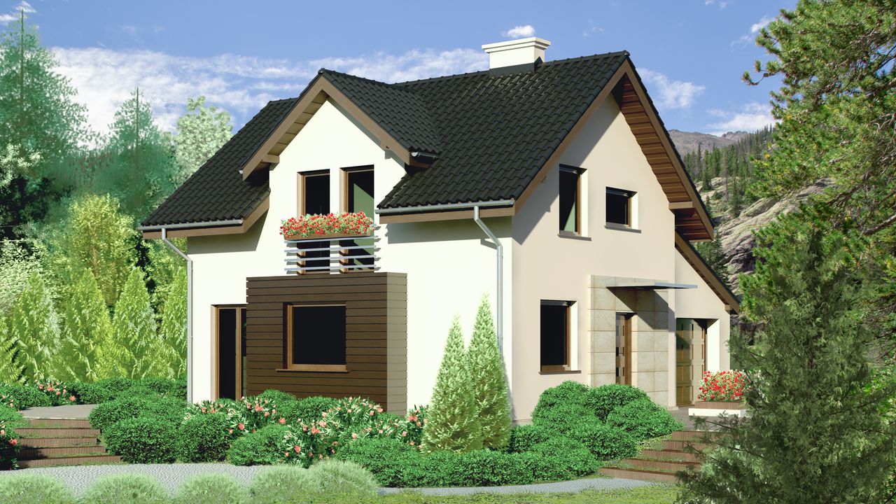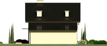Graficzne opracowanie rzutów poglądowych widocznych na karcie projektu zostało wykonane przez Extradom.pl. Prezentowane przez Extradom.pl wizualizacje wykonane zostały przez autora projektu i należy poczytywać je jedynie za przykład i propozycję wykończenia, wizję architektoniczną autora projektu. Ostateczne wykończenie budynku może nastąpić na wiele sposobów. Szczegółowe rozwiązania zastosowane w oferowanej dokumentacji - w tym również ilość, lokalizacje i wygląd okien, drzwi, kominów - mogą w niewielkim stopniu różnić się od prezentowanej wizualizacji budynku.