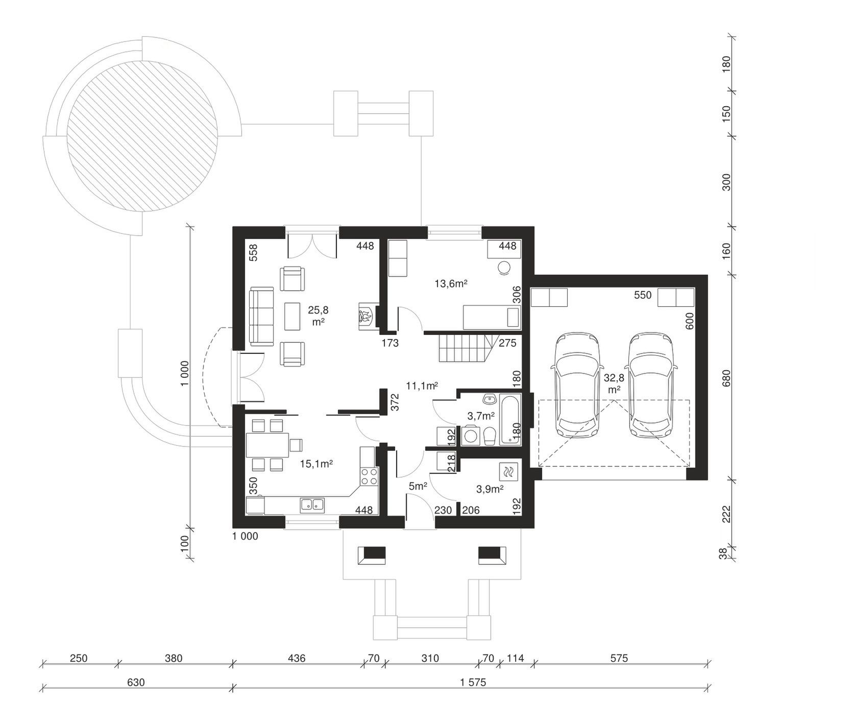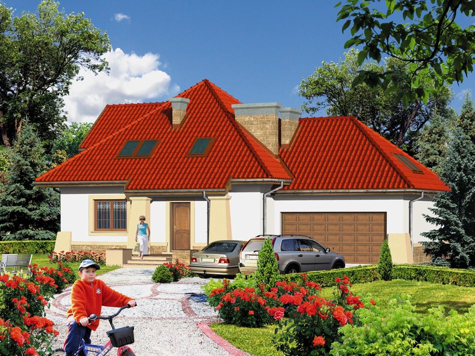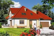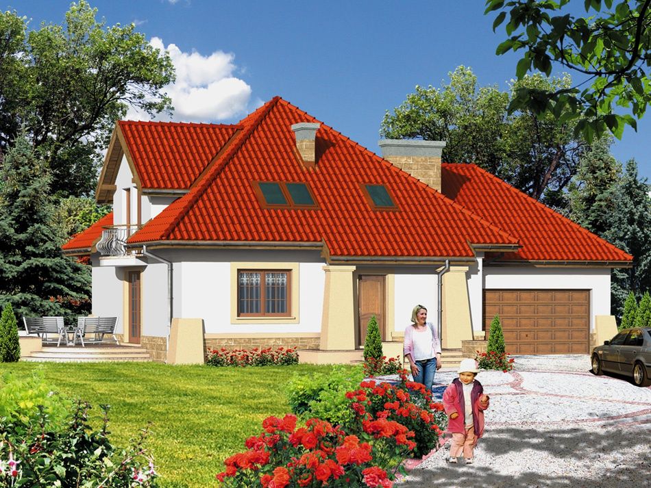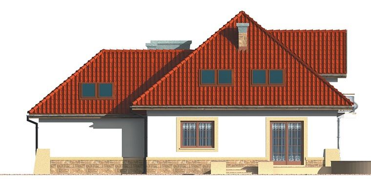 Graficzne opracowanie rzutów poglądowych widocznych na karcie projektu zostało wykonane przez Extradom.pl. Prezentowane przez Extradom.pl wizualizacje wykonane zostały przez autora projektu i należy poczytywać je jedynie za przykład i propozycję wykończenia, wizję architektoniczną autora projektu. Ostateczne wykończenie budynku może nastąpić na wiele sposobów. Szczegółowe rozwiązania zastosowane w oferowanej dokumentacji - w tym również ilość, lokalizacje i wygląd okien, drzwi, kominów - mogą w niewielkim stopniu różnić się od prezentowanej wizualizacji budynku.