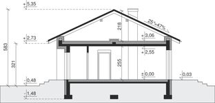 Ściany zewnętrzne: pustak 25 cm, styropian 20 cm. Ściany nośne: pustak 25 cm. Strop: monolityczny żelbetowy. Dach: kąt nachylenia 25°, pokrycie - dachówka ceramiczna lub betonowa. Instalacja solarna.
