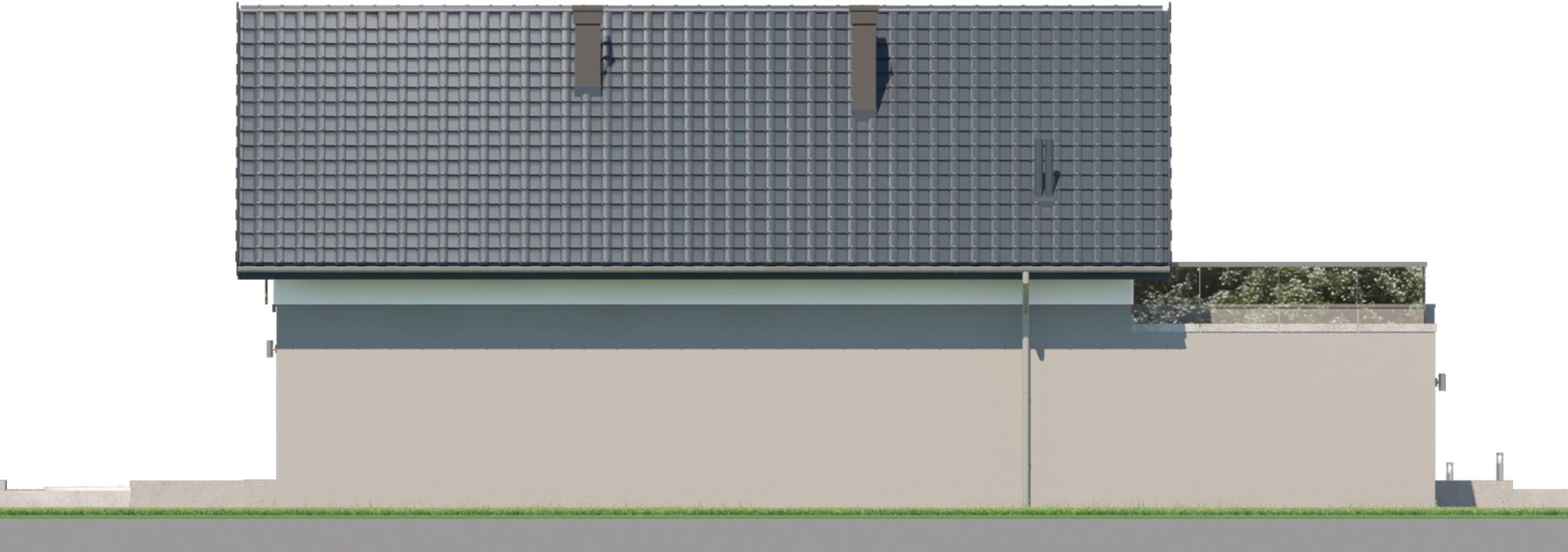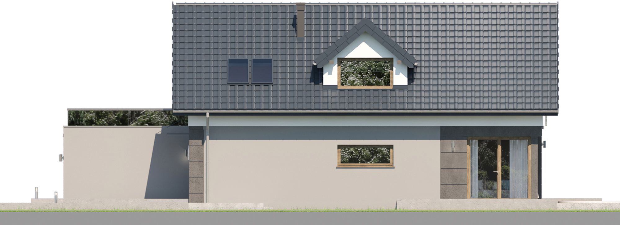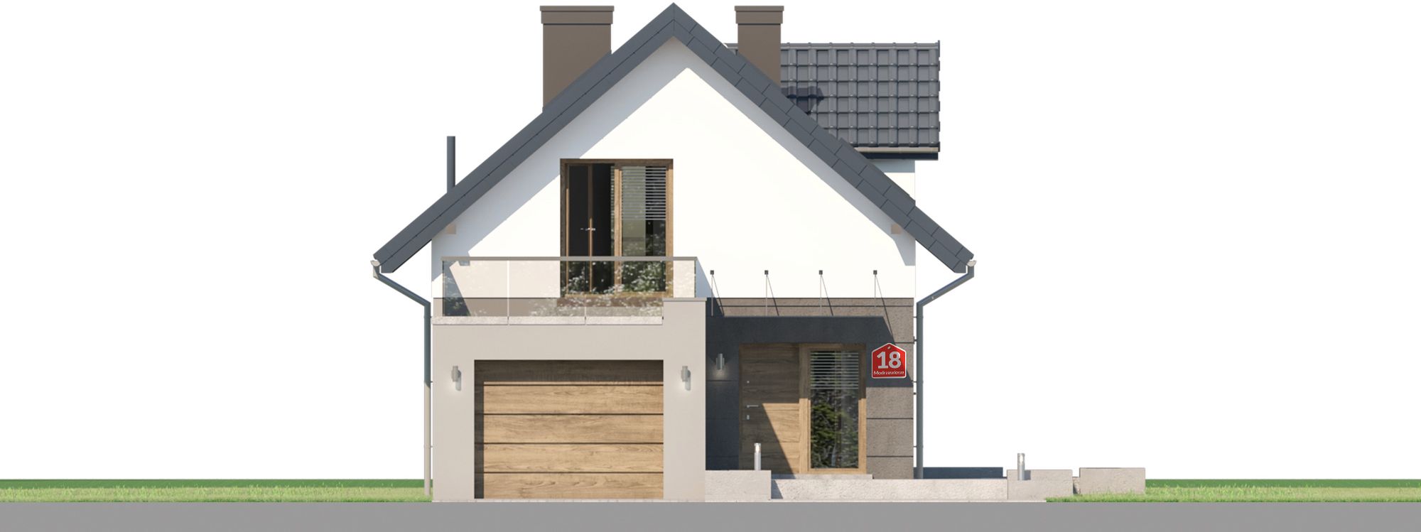 Graficzne opracowanie rzutów poglądowych widocznych na karcie projektu zostało wykonane przez Extradom.pl. Prezentowane przez Extradom.pl wizualizacje wykonane zostały przez autora projektu i należy poczytywać je jedynie za przykład i propozycję wykończenia, wizję architektoniczną autora projektu. Ostateczne wykończenie budynku może nastąpić na wiele sposobów. Szczegółowe rozwiązania zastosowane w oferowanej dokumentacji - w tym również ilość, lokalizacje i wygląd okien, drzwi, kominów - mogą w niewielkim stopniu różnić się od prezentowanej wizualizacji budynku.