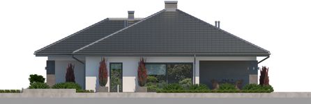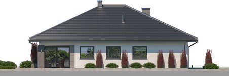 Graficzne opracowanie rzutów poglądowych widocznych na karcie projektu zostało wykonane przez Extradom.pl. Prezentowane przez Extradom.pl wizualizacje wykonane zostały przez autora projektu i należy poczytywać je jedynie za przykład i propozycję wykończenia, wizję architektoniczną autora projektu. Ostateczne wykończenie budynku może nastąpić na wiele sposobów. Szczegółowe rozwiązania zastosowane w oferowanej dokumentacji - w tym również ilość, lokalizacje i wygląd okien, drzwi, kominów - mogą w niewielkim stopniu różnić się od prezentowanej wizualizacji budynku.