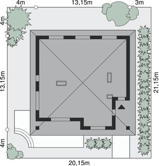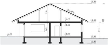 Graficzne opracowanie rzutów poglądowych widocznych na karcie projektu zostało wykonane przez Extradom.pl. Prezentowane przez Extradom.pl wizualizacje wykonane zostały przez autora projektu i należy poczytywać je jedynie za przykład i propozycję wykończenia, wizję architektoniczną autora projektu. Ostateczne wykończenie budynku może nastąpić na wiele sposobów. Szczegółowe rozwiązania zastosowane w oferowanej dokumentacji - w tym również ilość, lokalizacje i wygląd okien, drzwi, kominów - mogą w niewielkim stopniu różnić się od prezentowanej wizualizacji budynku.
