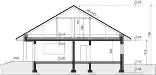 Graficzne opracowanie rzutów poglądowych widocznych na karcie projektu zostało wykonane przez Extradom.pl. Prezentowane przez Extradom.pl wizualizacje wykonane zostały przez autora projektu i należy poczytywać je jedynie za przykład i propozycję wykończenia, wizję architektoniczną autora projektu. Ostateczne wykończenie budynku może nastąpić na wiele sposobów. Szczegółowe rozwiązania zastosowane w oferowanej dokumentacji - w tym również ilość, lokalizacje i wygląd okien, drzwi, kominów - mogą w niewielkim stopniu różnić się od prezentowanej wizualizacji budynku.