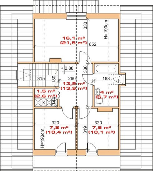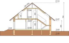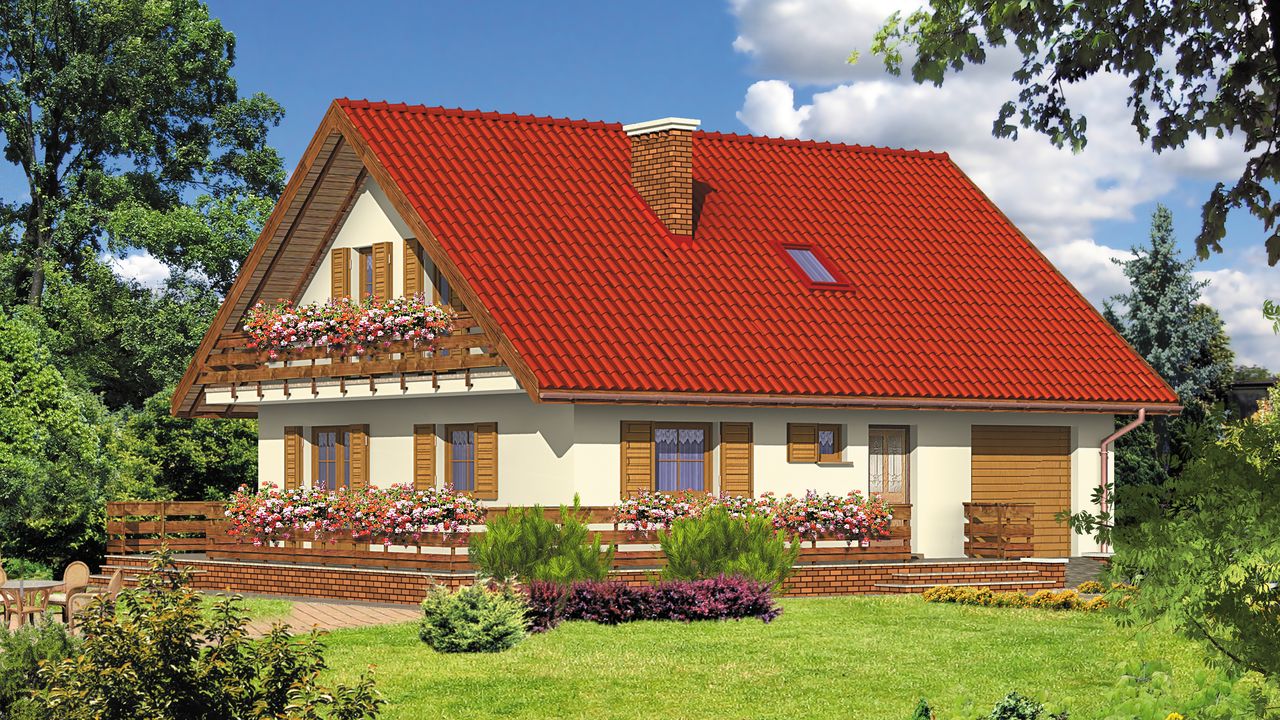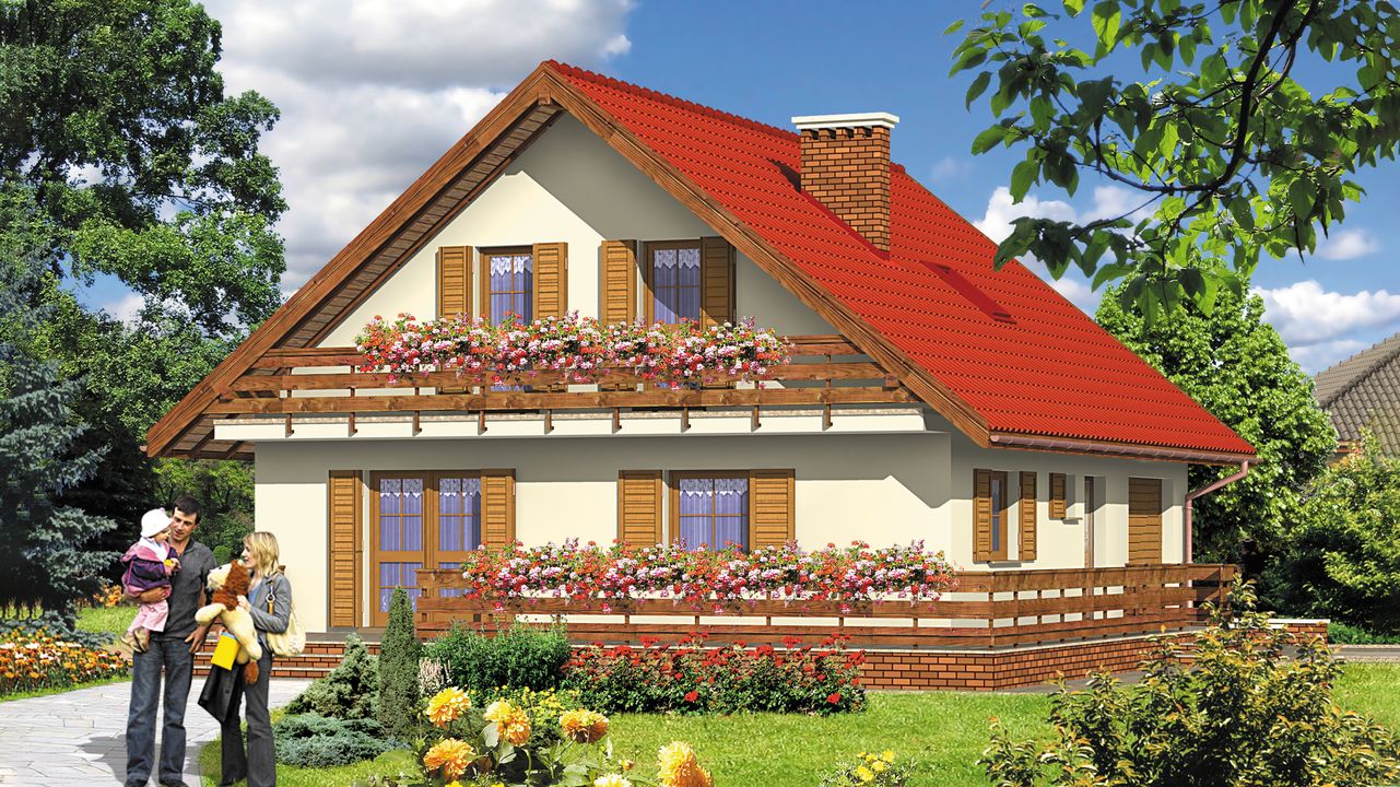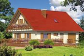 Graficzne opracowanie rzutów poglądowych widocznych na karcie projektu zostało wykonane przez Extradom.pl. Prezentowane przez Extradom.pl wizualizacje wykonane zostały przez autora projektu i należy poczytywać je jedynie za przykład i propozycję wykończenia, wizję architektoniczną autora projektu. Ostateczne wykończenie budynku może nastąpić na wiele sposobów. Szczegółowe rozwiązania zastosowane w oferowanej dokumentacji - w tym również ilość, lokalizacje i wygląd okien, drzwi, kominów - mogą w niewielkim stopniu różnić się od prezentowanej wizualizacji budynku.