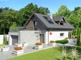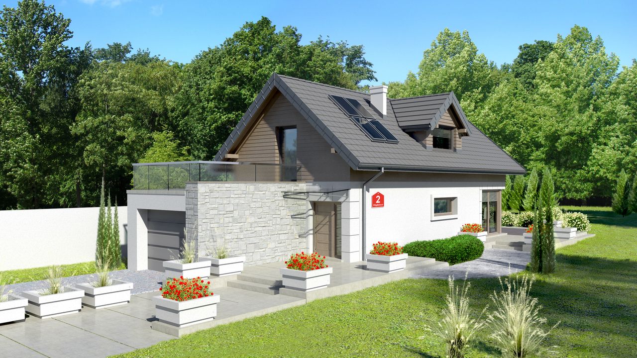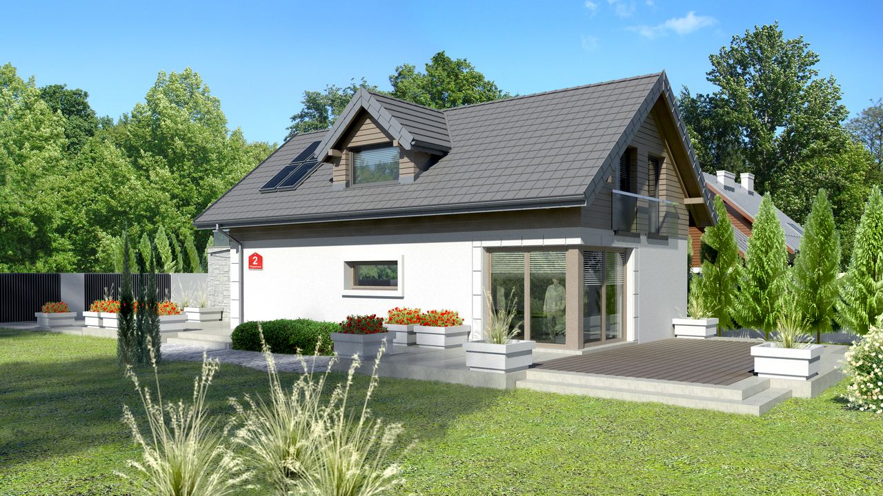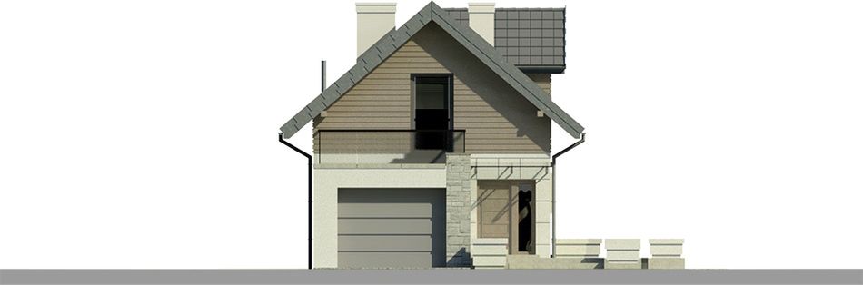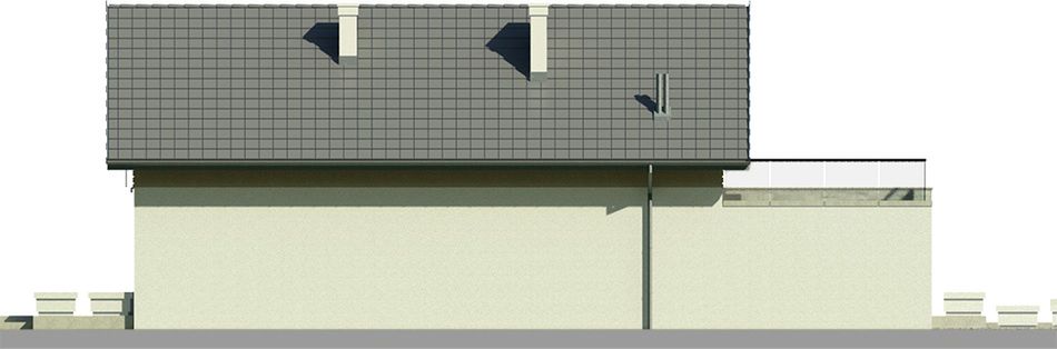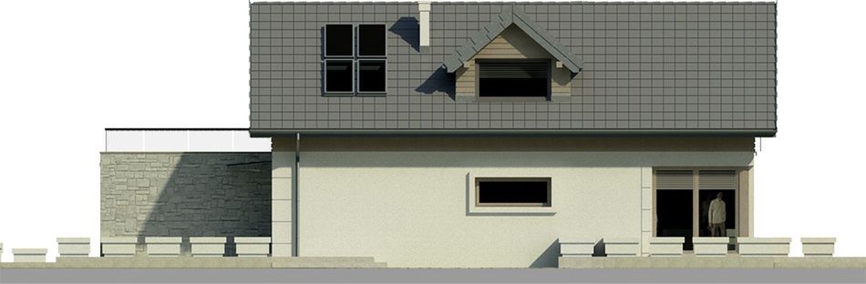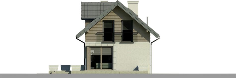 Graficzne opracowanie rzutów poglądowych widocznych na karcie projektu zostało wykonane przez Extradom.pl. Prezentowane przez Extradom.pl wizualizacje wykonane zostały przez autora projektu i należy poczytywać je jedynie za przykład i propozycję wykończenia, wizję architektoniczną autora projektu. Ostateczne wykończenie budynku może nastąpić na wiele sposobów. Szczegółowe rozwiązania zastosowane w oferowanej dokumentacji - w tym również ilość, lokalizacje i wygląd okien, drzwi, kominów - mogą w niewielkim stopniu różnić się od prezentowanej wizualizacji budynku.