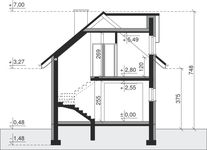 Graficzne opracowanie rzutów poglądowych widocznych na karcie projektu zostało wykonane przez Extradom.pl. Prezentowane przez Extradom.pl wizualizacje wykonane zostały przez autora projektu i należy poczytywać je jedynie za przykład i propozycję wykończenia, wizję architektoniczną autora projektu. Ostateczne wykończenie budynku może nastąpić na wiele sposobów. Szczegółowe rozwiązania zastosowane w oferowanej dokumentacji - w tym również ilość, lokalizacje i wygląd okien, drzwi, kominów - mogą w niewielkim stopniu różnić się od prezentowanej wizualizacji budynku.