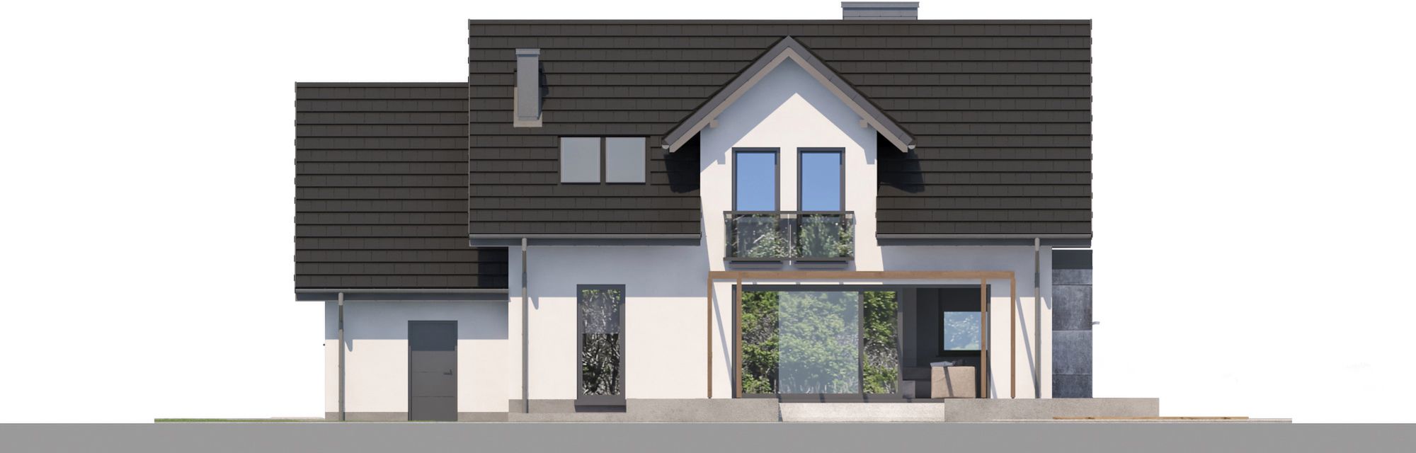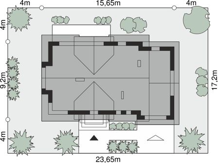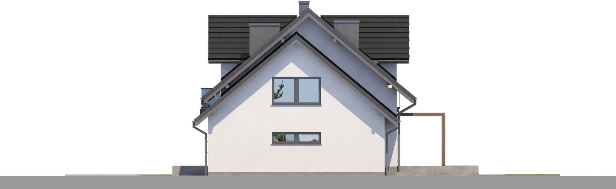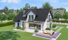 Graficzne opracowanie rzutów poglądowych widocznych na karcie projektu zostało wykonane przez Extradom.pl. Prezentowane przez Extradom.pl wizualizacje wykonane zostały przez autora projektu i należy poczytywać je jedynie za przykład i propozycję wykończenia, wizję architektoniczną autora projektu. Ostateczne wykończenie budynku może nastąpić na wiele sposobów. Szczegółowe rozwiązania zastosowane w oferowanej dokumentacji - w tym również ilość, lokalizacje i wygląd okien, drzwi, kominów - mogą w niewielkim stopniu różnić się od prezentowanej wizualizacji budynku.