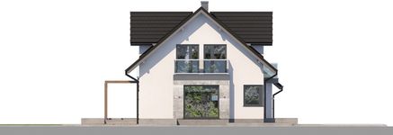 Graficzne opracowanie rzutów poglądowych widocznych na karcie projektu zostało wykonane przez Extradom.pl. Prezentowane przez Extradom.pl wizualizacje wykonane zostały przez autora projektu i należy poczytywać je jedynie za przykład i propozycję wykończenia, wizję architektoniczną autora projektu. Ostateczne wykończenie budynku może nastąpić na wiele sposobów. Szczegółowe rozwiązania zastosowane w oferowanej dokumentacji - w tym również ilość, lokalizacje i wygląd okien, drzwi, kominów - mogą w niewielkim stopniu różnić się od prezentowanej wizualizacji budynku.