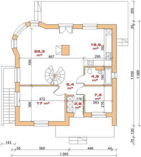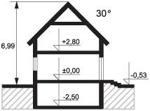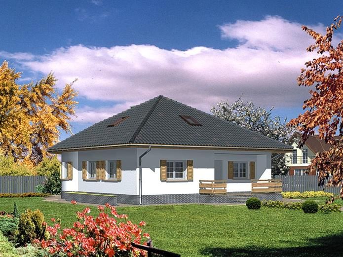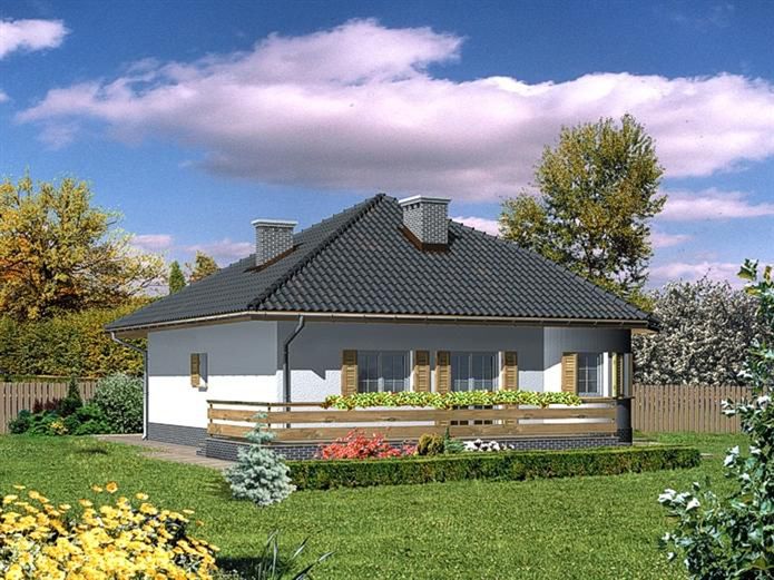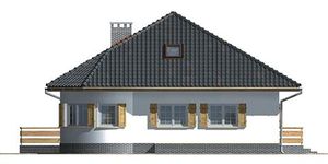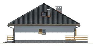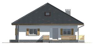 Graficzne opracowanie rzutów poglądowych widocznych na karcie projektu zostało wykonane przez Extradom.pl. Prezentowane przez Extradom.pl wizualizacje wykonane zostały przez autora projektu i należy poczytywać je jedynie za przykład i propozycję wykończenia, wizję architektoniczną autora projektu. Ostateczne wykończenie budynku może nastąpić na wiele sposobów. Szczegółowe rozwiązania zastosowane w oferowanej dokumentacji - w tym również ilość, lokalizacje i wygląd okien, drzwi, kominów - mogą w niewielkim stopniu różnić się od prezentowanej wizualizacji budynku.