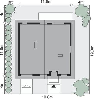 Graficzne opracowanie rzutów poglądowych widocznych na karcie projektu zostało wykonane przez Extradom.pl. Prezentowane przez Extradom.pl wizualizacje wykonane zostały przez autora projektu i należy poczytywać je jedynie za przykład i propozycję wykończenia, wizję architektoniczną autora projektu. Ostateczne wykończenie budynku może nastąpić na wiele sposobów. Szczegółowe rozwiązania zastosowane w oferowanej dokumentacji - w tym również ilość, lokalizacje i wygląd okien, drzwi, kominów - mogą w niewielkim stopniu różnić się od prezentowanej wizualizacji budynku.