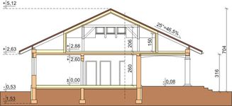 Ściany zewnętrzne: bloczki betonu komórkowego 36,5cm. Ściany nośne: bloczki betonu komórkowego 24 cm. Strop: monolityczny żelbetowy. Dach: kąt nachylenia 25°, pokrycie - dachówka ceramiczna lub betonowa.