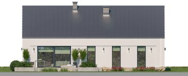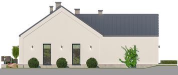Graficzne opracowanie rzutów poglądowych widocznych na karcie projektu zostało wykonane przez Extradom.pl. Prezentowane przez Extradom.pl wizualizacje wykonane zostały przez autora projektu i należy poczytywać je jedynie za przykład i propozycję wykończenia, wizję architektoniczną autora projektu. Ostateczne wykończenie budynku może nastąpić na wiele sposobów. Szczegółowe rozwiązania zastosowane w oferowanej dokumentacji - w tym również ilość, lokalizacje i wygląd okien, drzwi, kominów - mogą w niewielkim stopniu różnić się od prezentowanej wizualizacji budynku.