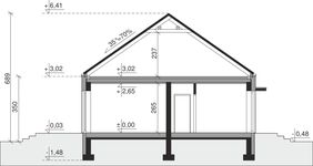 Ściany zewnętrzne: pustak 25 cm, styropian 20 cm. Ściany nośne: pustak 25 cm. Strop: drewniany. Dach: kąt nachylenia 35°, pokrycie - dachówka ceramiczna lub betonowa. Instalacja solarna.