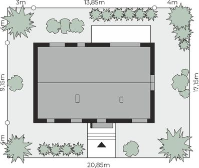 Graficzne opracowanie rzutów poglądowych widocznych na karcie projektu zostało wykonane przez Extradom.pl. Prezentowane przez Extradom.pl wizualizacje wykonane zostały przez autora projektu i należy poczytywać je jedynie za przykład i propozycję wykończenia, wizję architektoniczną autora projektu. Ostateczne wykończenie budynku może nastąpić na wiele sposobów. Szczegółowe rozwiązania zastosowane w oferowanej dokumentacji - w tym również ilość, lokalizacje i wygląd okien, drzwi, kominów - mogą w niewielkim stopniu różnić się od prezentowanej wizualizacji budynku.