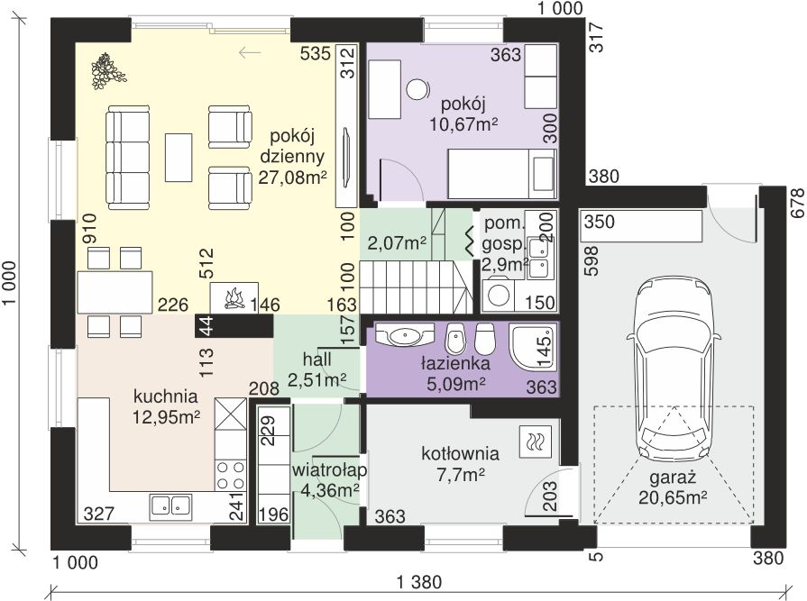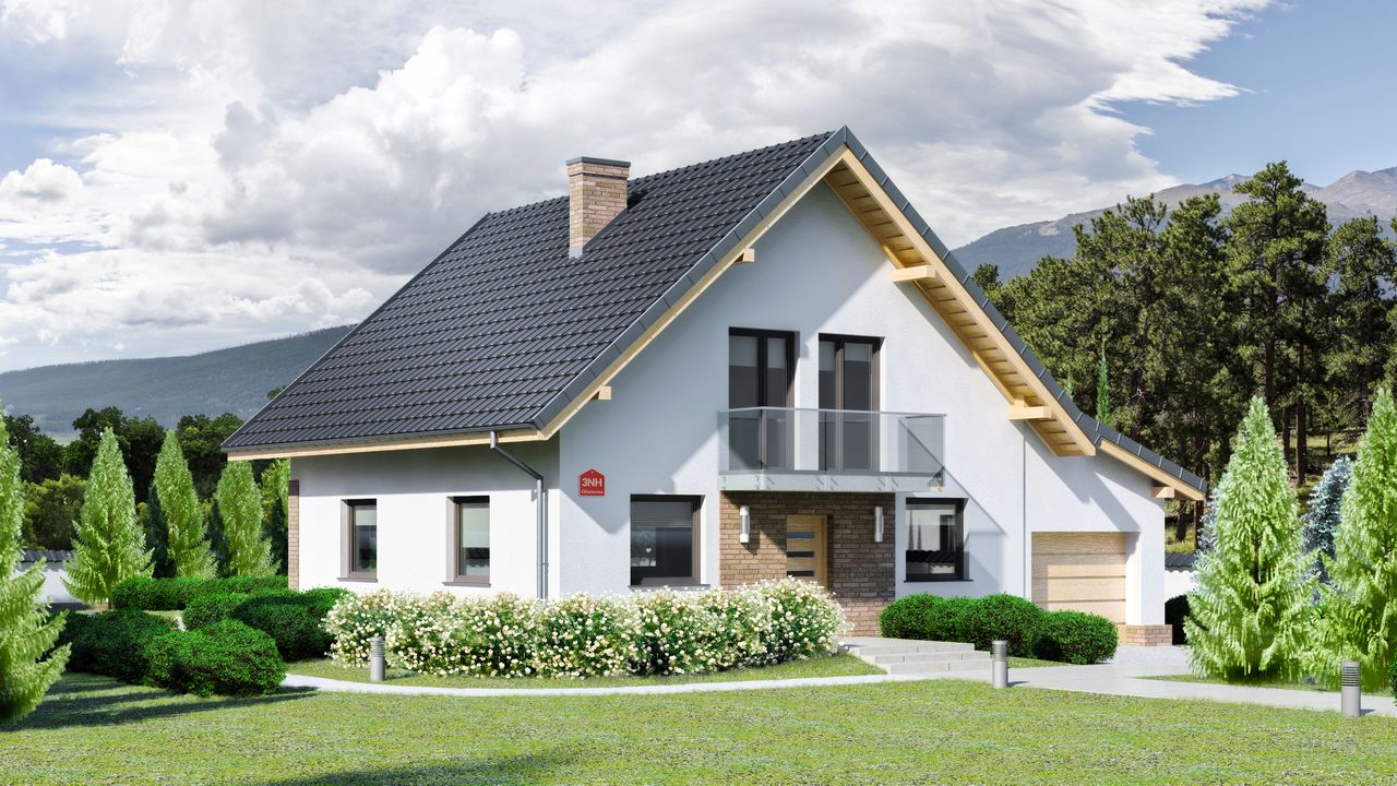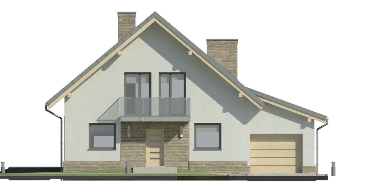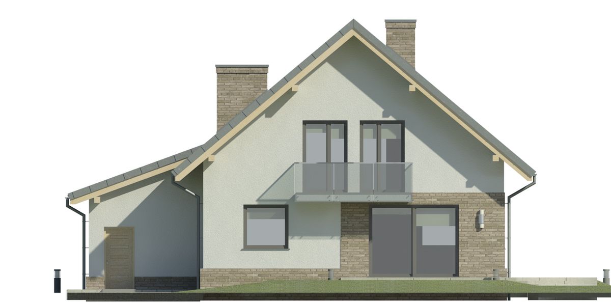 Graficzne opracowanie rzutów poglądowych widocznych na karcie projektu zostało wykonane przez Extradom.pl. Prezentowane przez Extradom.pl wizualizacje wykonane zostały przez autora projektu i należy poczytywać je jedynie za przykład i propozycję wykończenia, wizję architektoniczną autora projektu. Ostateczne wykończenie budynku może nastąpić na wiele sposobów. Szczegółowe rozwiązania zastosowane w oferowanej dokumentacji - w tym również ilość, lokalizacje i wygląd okien, drzwi, kominów - mogą w niewielkim stopniu różnić się od prezentowanej wizualizacji budynku.