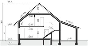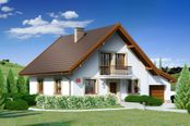 Graficzne opracowanie rzutów poglądowych widocznych na karcie projektu zostało wykonane przez Extradom.pl. Prezentowane przez Extradom.pl wizualizacje wykonane zostały przez autora projektu i należy poczytywać je jedynie za przykład i propozycję wykończenia, wizję architektoniczną autora projektu. Ostateczne wykończenie budynku może nastąpić na wiele sposobów. Szczegółowe rozwiązania zastosowane w oferowanej dokumentacji - w tym również ilość, lokalizacje i wygląd okien, drzwi, kominów - mogą w niewielkim stopniu różnić się od prezentowanej wizualizacji budynku.
