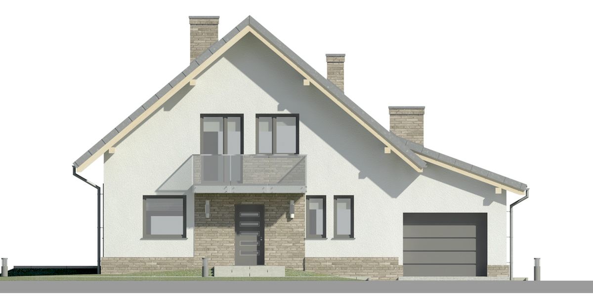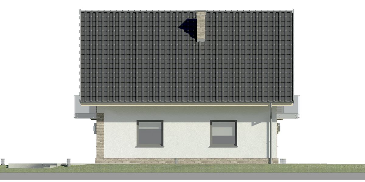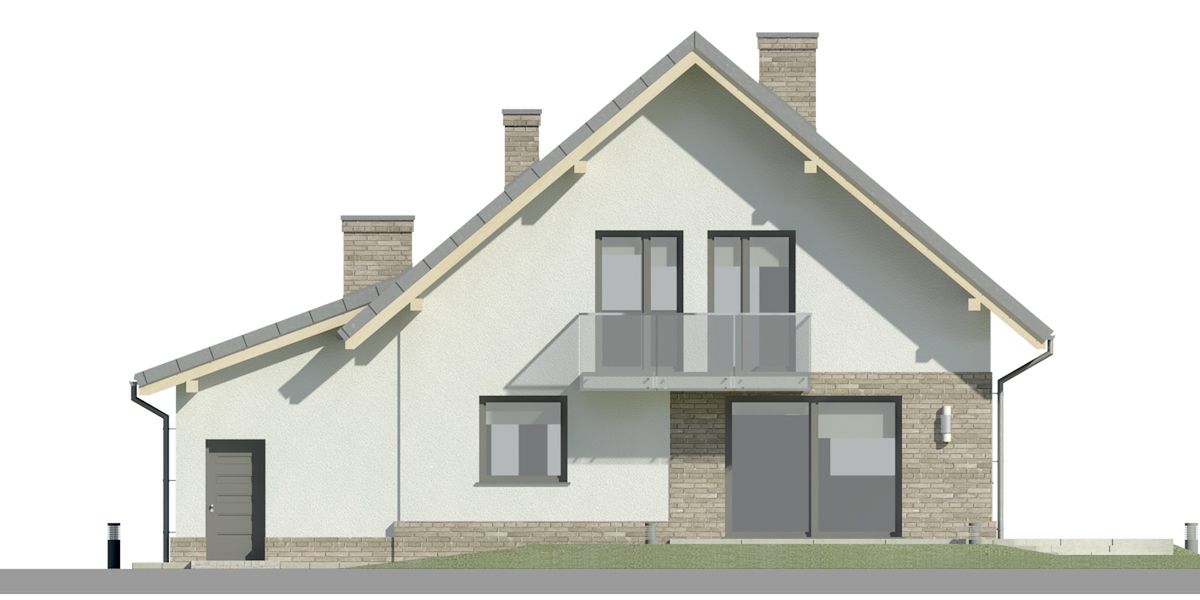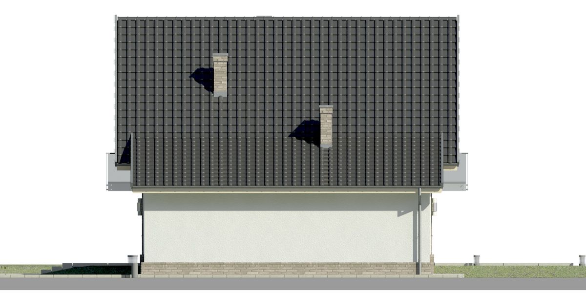 Graficzne opracowanie rzutów poglądowych widocznych na karcie projektu zostało wykonane przez Extradom.pl. Prezentowane przez Extradom.pl wizualizacje wykonane zostały przez autora projektu i należy poczytywać je jedynie za przykład i propozycję wykończenia, wizję architektoniczną autora projektu. Ostateczne wykończenie budynku może nastąpić na wiele sposobów. Szczegółowe rozwiązania zastosowane w oferowanej dokumentacji - w tym również ilość, lokalizacje i wygląd okien, drzwi, kominów - mogą w niewielkim stopniu różnić się od prezentowanej wizualizacji budynku.