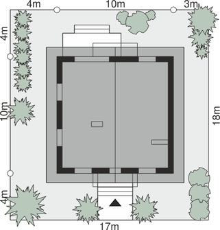 Ściany zewnętrzne: pustak 25 cm, styropian 20 cm. Ściany nośne: pustak 25 cm. Strop: monolityczny żelbetowy. Dach: kąt nachylenia 40°, pokrycie - dachówka ceramiczna lub betonowa. Instalacja solarna.