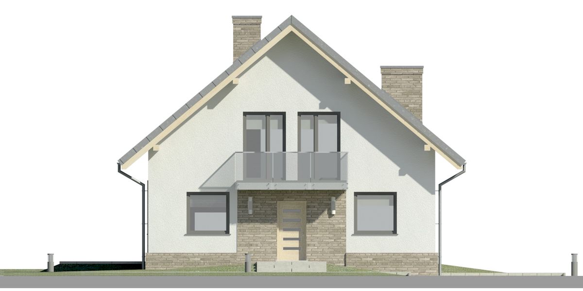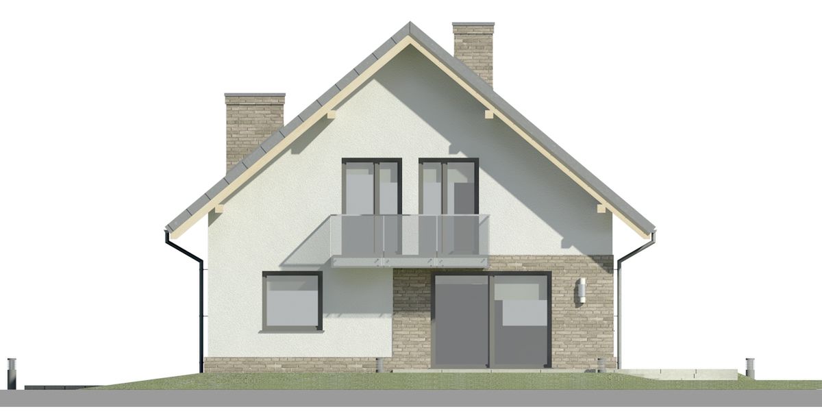 Graficzne opracowanie rzutów poglądowych widocznych na karcie projektu zostało wykonane przez Extradom.pl. Prezentowane przez Extradom.pl wizualizacje wykonane zostały przez autora projektu i należy poczytywać je jedynie za przykład i propozycję wykończenia, wizję architektoniczną autora projektu. Ostateczne wykończenie budynku może nastąpić na wiele sposobów. Szczegółowe rozwiązania zastosowane w oferowanej dokumentacji - w tym również ilość, lokalizacje i wygląd okien, drzwi, kominów - mogą w niewielkim stopniu różnić się od prezentowanej wizualizacji budynku.