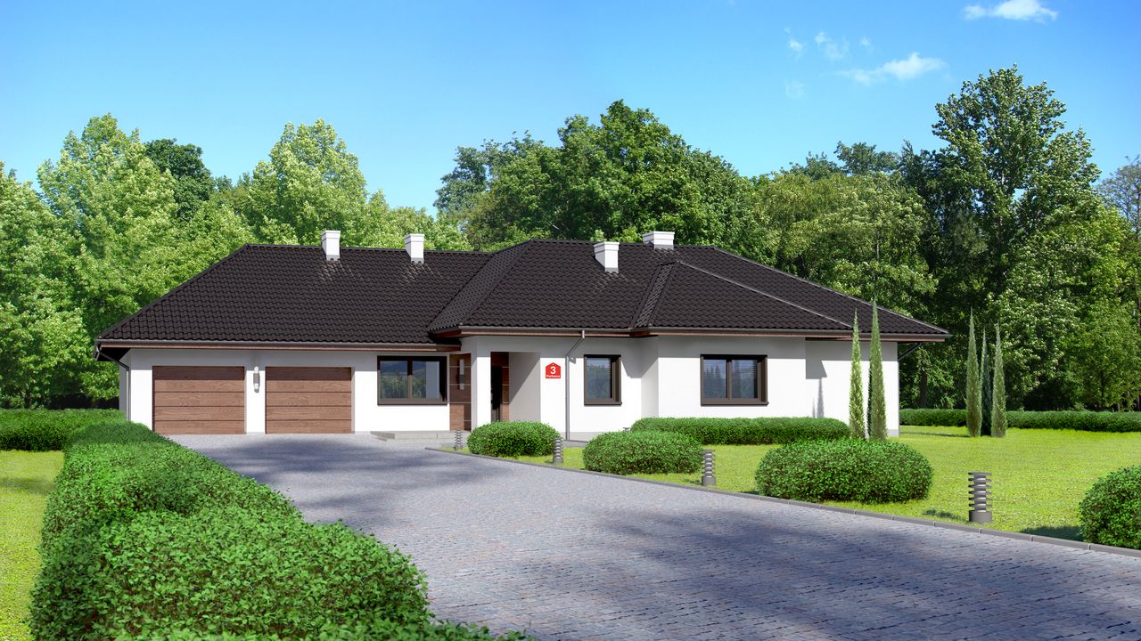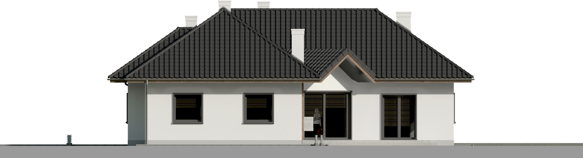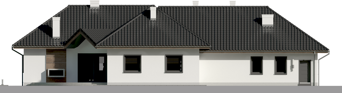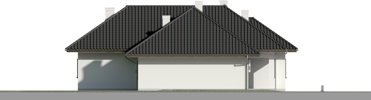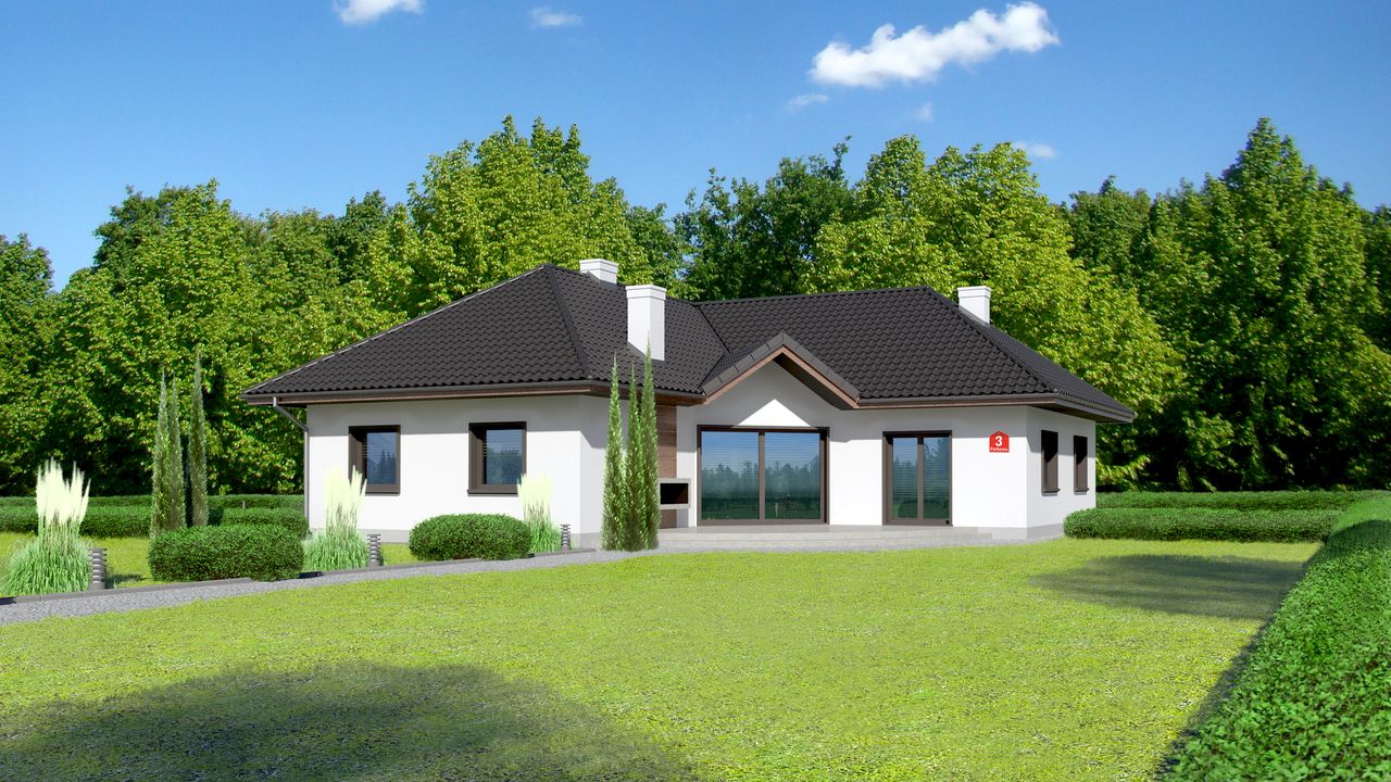 Graficzne opracowanie rzutów poglądowych widocznych na karcie projektu zostało wykonane przez Extradom.pl. Prezentowane przez Extradom.pl wizualizacje wykonane zostały przez autora projektu i należy poczytywać je jedynie za przykład i propozycję wykończenia, wizję architektoniczną autora projektu. Ostateczne wykończenie budynku może nastąpić na wiele sposobów. Szczegółowe rozwiązania zastosowane w oferowanej dokumentacji - w tym również ilość, lokalizacje i wygląd okien, drzwi, kominów - mogą w niewielkim stopniu różnić się od prezentowanej wizualizacji budynku.