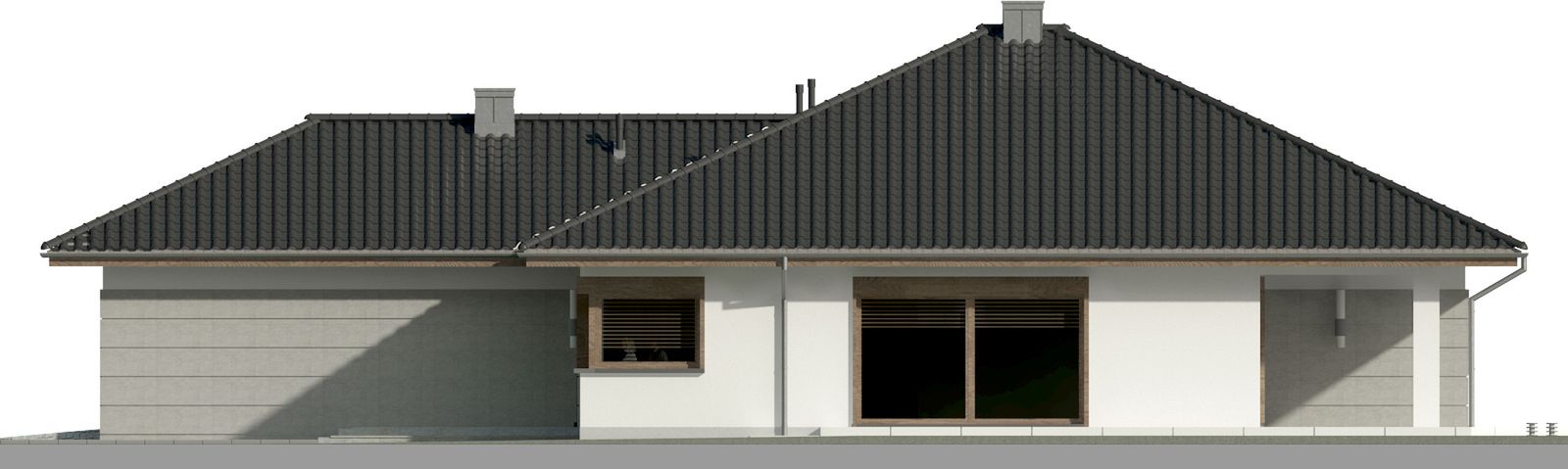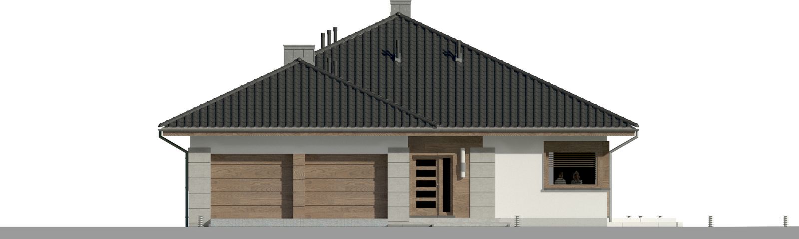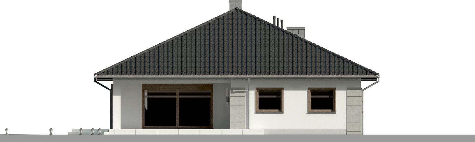 Graficzne opracowanie rzutów poglądowych widocznych na karcie projektu zostało wykonane przez Extradom.pl. Prezentowane przez Extradom.pl wizualizacje wykonane zostały przez autora projektu i należy poczytywać je jedynie za przykład i propozycję wykończenia, wizję architektoniczną autora projektu. Ostateczne wykończenie budynku może nastąpić na wiele sposobów. Szczegółowe rozwiązania zastosowane w oferowanej dokumentacji - w tym również ilość, lokalizacje i wygląd okien, drzwi, kominów - mogą w niewielkim stopniu różnić się od prezentowanej wizualizacji budynku.