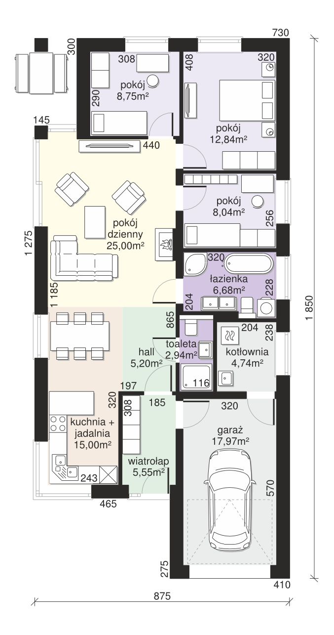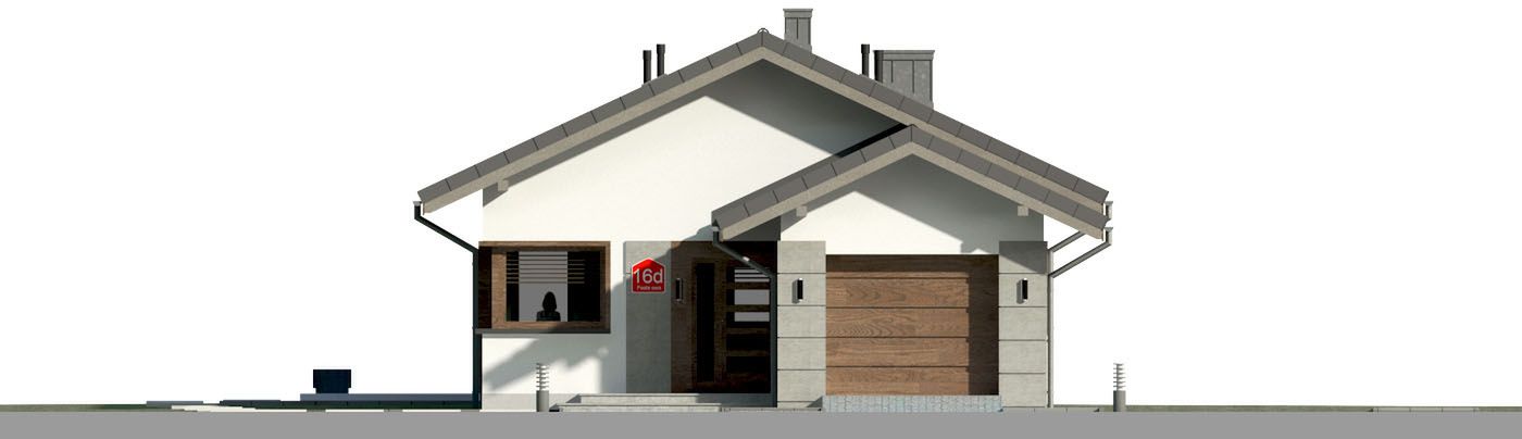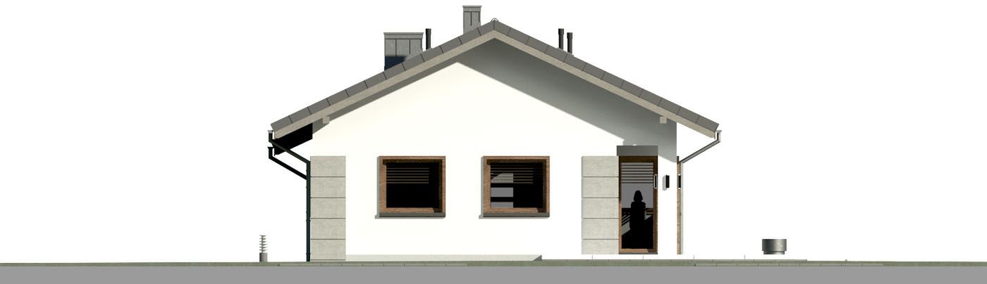 Graficzne opracowanie rzutów poglądowych widocznych na karcie projektu zostało wykonane przez Extradom.pl. Prezentowane przez Extradom.pl wizualizacje wykonane zostały przez autora projektu i należy poczytywać je jedynie za przykład i propozycję wykończenia, wizję architektoniczną autora projektu. Ostateczne wykończenie budynku może nastąpić na wiele sposobów. Szczegółowe rozwiązania zastosowane w oferowanej dokumentacji - w tym również ilość, lokalizacje i wygląd okien, drzwi, kominów - mogą w niewielkim stopniu różnić się od prezentowanej wizualizacji budynku.