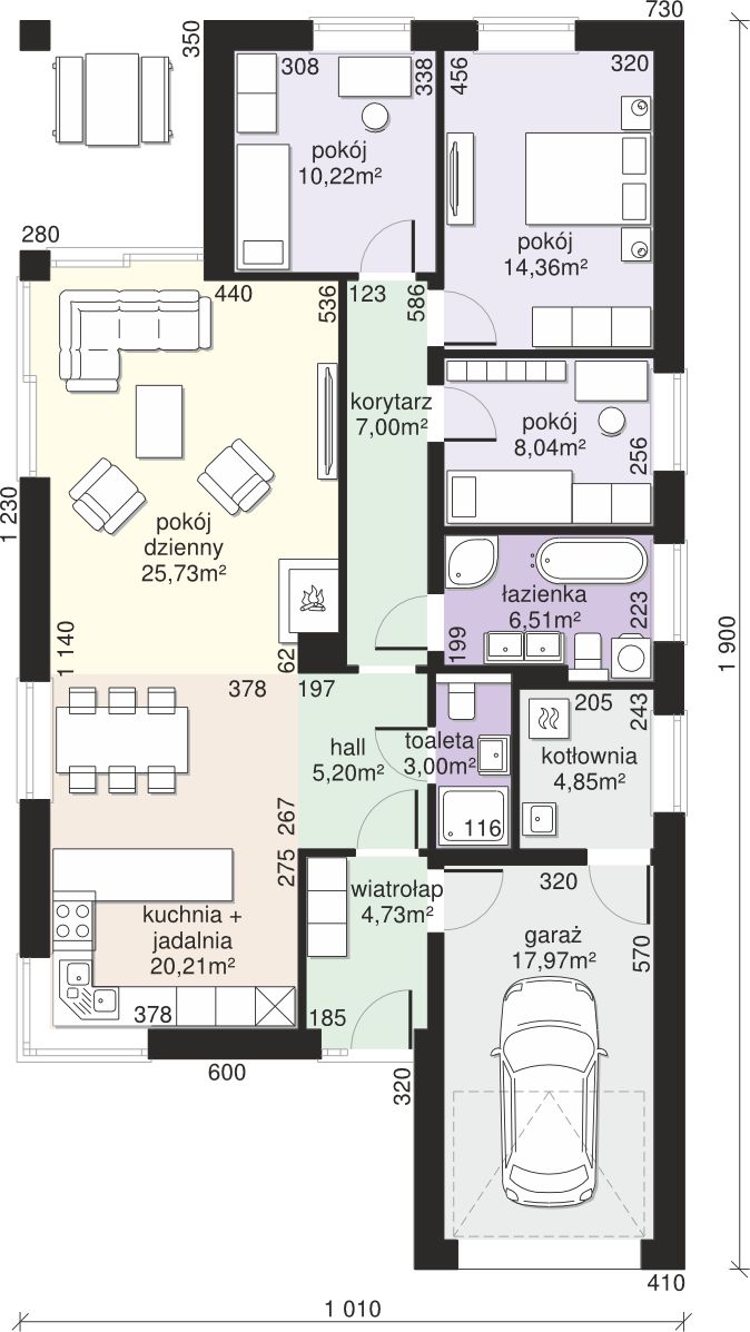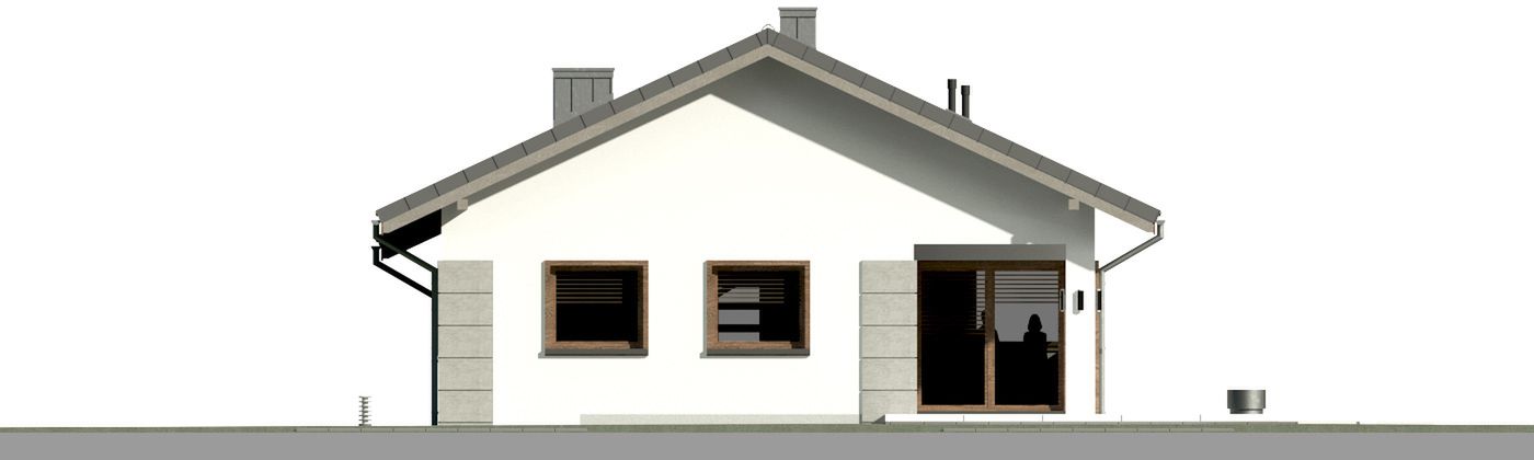Graficzne opracowanie rzutów poglądowych widocznych na karcie projektu zostało wykonane przez Extradom.pl. Prezentowane przez Extradom.pl wizualizacje wykonane zostały przez autora projektu i należy poczytywać je jedynie za przykład i propozycję wykończenia, wizję architektoniczną autora projektu. Ostateczne wykończenie budynku może nastąpić na wiele sposobów. Szczegółowe rozwiązania zastosowane w oferowanej dokumentacji - w tym również ilość, lokalizacje i wygląd okien, drzwi, kominów - mogą w niewielkim stopniu różnić się od prezentowanej wizualizacji budynku.