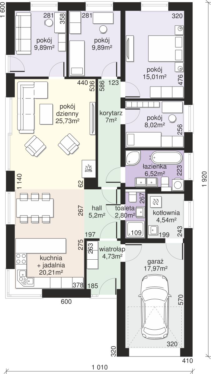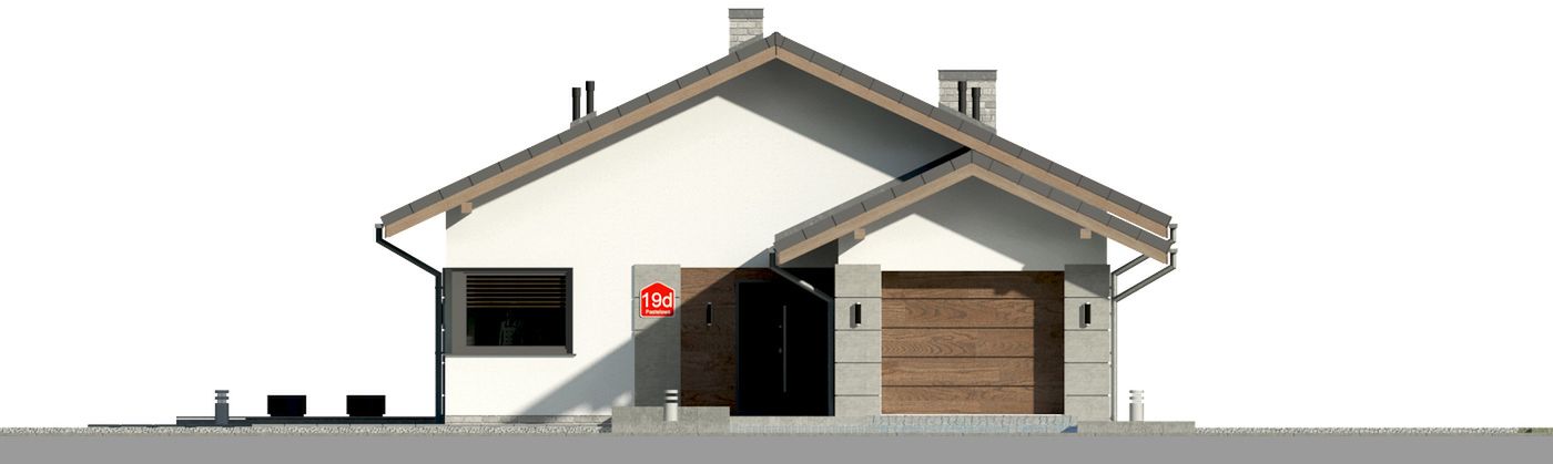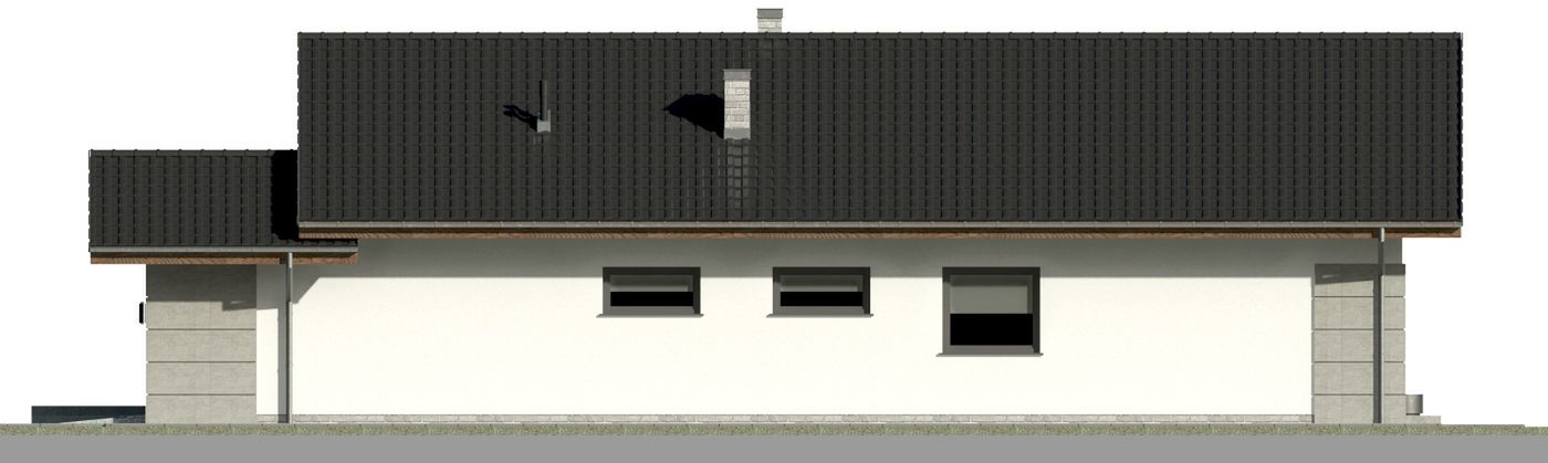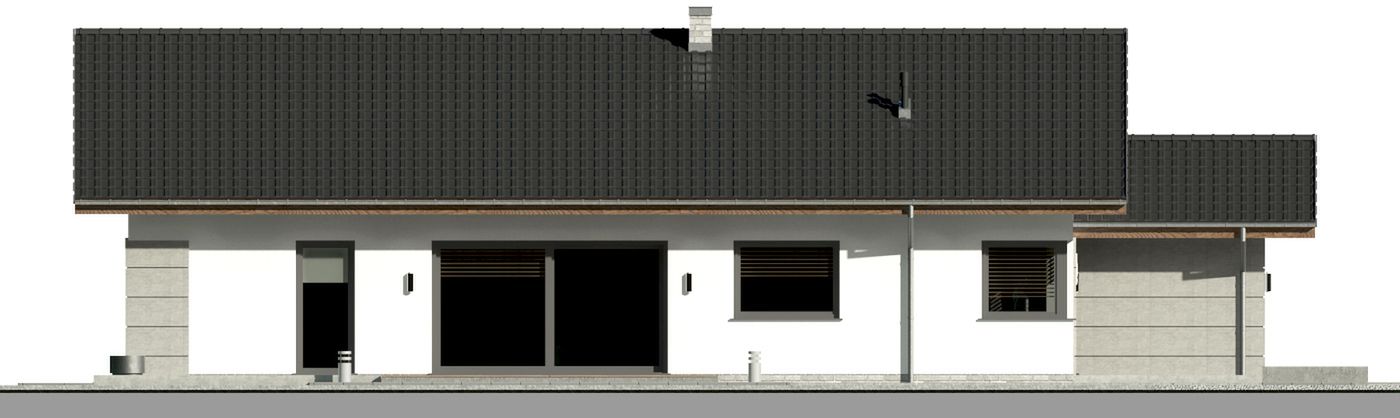 Graficzne opracowanie rzutów poglądowych widocznych na karcie projektu zostało wykonane przez Extradom.pl. Prezentowane przez Extradom.pl wizualizacje wykonane zostały przez autora projektu i należy poczytywać je jedynie za przykład i propozycję wykończenia, wizję architektoniczną autora projektu. Ostateczne wykończenie budynku może nastąpić na wiele sposobów. Szczegółowe rozwiązania zastosowane w oferowanej dokumentacji - w tym również ilość, lokalizacje i wygląd okien, drzwi, kominów - mogą w niewielkim stopniu różnić się od prezentowanej wizualizacji budynku.