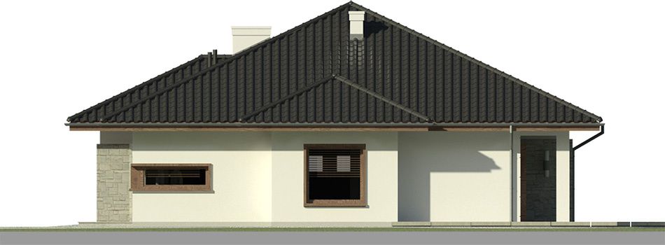 Graficzne opracowanie rzutów poglądowych widocznych na karcie projektu zostało wykonane przez Extradom.pl. Prezentowane przez Extradom.pl wizualizacje wykonane zostały przez autora projektu i należy poczytywać je jedynie za przykład i propozycję wykończenia, wizję architektoniczną autora projektu. Ostateczne wykończenie budynku może nastąpić na wiele sposobów. Szczegółowe rozwiązania zastosowane w oferowanej dokumentacji - w tym również ilość, lokalizacje i wygląd okien, drzwi, kominów - mogą w niewielkim stopniu różnić się od prezentowanej wizualizacji budynku.