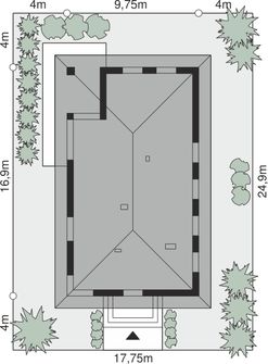 Graficzne opracowanie rzutów poglądowych widocznych na karcie projektu zostało wykonane przez Extradom.pl. Prezentowane przez Extradom.pl wizualizacje wykonane zostały przez autora projektu i należy poczytywać je jedynie za przykład i propozycję wykończenia, wizję architektoniczną autora projektu. Ostateczne wykończenie budynku może nastąpić na wiele sposobów. Szczegółowe rozwiązania zastosowane w oferowanej dokumentacji - w tym również ilość, lokalizacje i wygląd okien, drzwi, kominów - mogą w niewielkim stopniu różnić się od prezentowanej wizualizacji budynku.