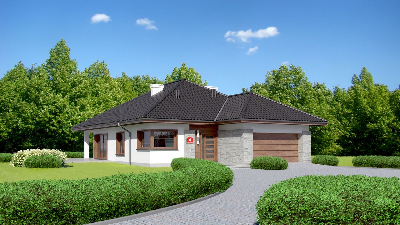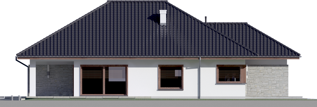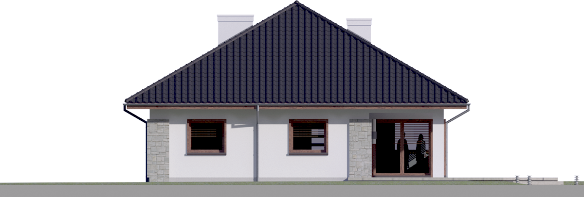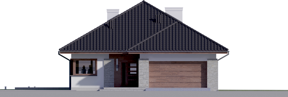 Graficzne opracowanie rzutów poglądowych widocznych na karcie projektu zostało wykonane przez Extradom.pl. Prezentowane przez Extradom.pl wizualizacje wykonane zostały przez autora projektu i należy poczytywać je jedynie za przykład i propozycję wykończenia, wizję architektoniczną autora projektu. Ostateczne wykończenie budynku może nastąpić na wiele sposobów. Szczegółowe rozwiązania zastosowane w oferowanej dokumentacji - w tym również ilość, lokalizacje i wygląd okien, drzwi, kominów - mogą w niewielkim stopniu różnić się od prezentowanej wizualizacji budynku.