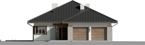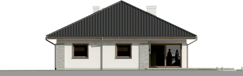 Graficzne opracowanie rzutów poglądowych widocznych na karcie projektu zostało wykonane przez Extradom.pl. Prezentowane przez Extradom.pl wizualizacje wykonane zostały przez autora projektu i należy poczytywać je jedynie za przykład i propozycję wykończenia, wizję architektoniczną autora projektu. Ostateczne wykończenie budynku może nastąpić na wiele sposobów. Szczegółowe rozwiązania zastosowane w oferowanej dokumentacji - w tym również ilość, lokalizacje i wygląd okien, drzwi, kominów - mogą w niewielkim stopniu różnić się od prezentowanej wizualizacji budynku.