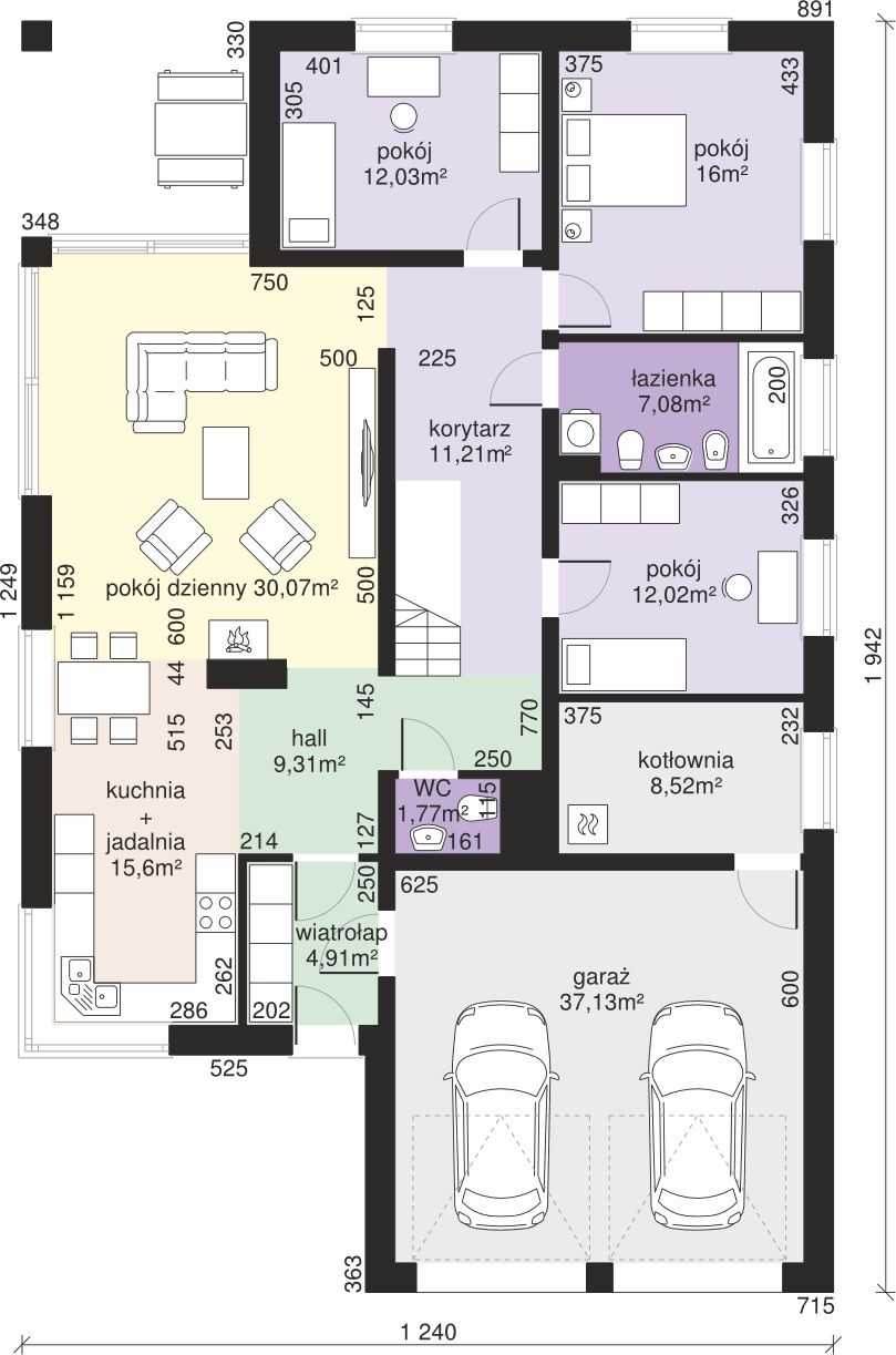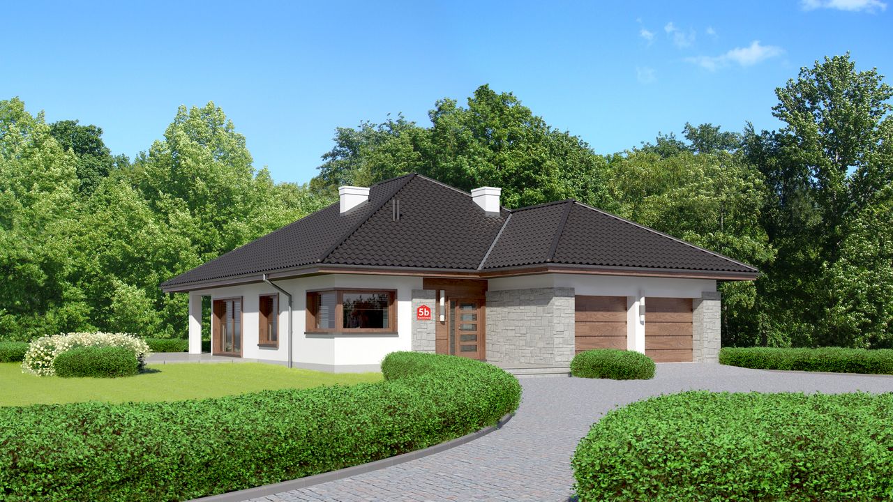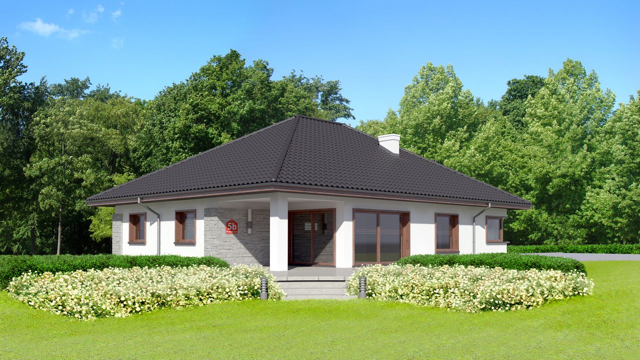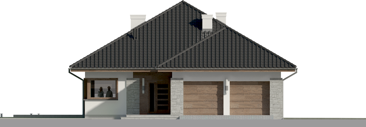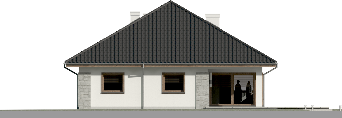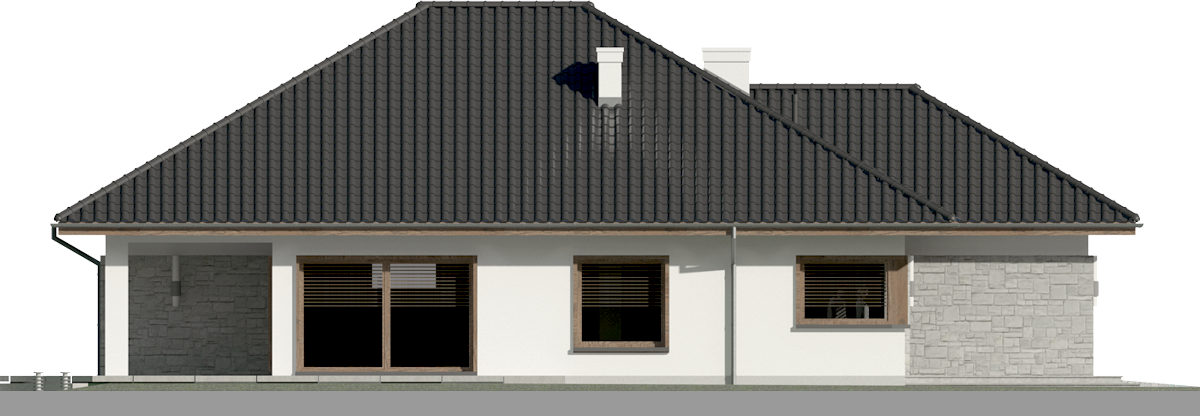 Graficzne opracowanie rzutów poglądowych widocznych na karcie projektu zostało wykonane przez Extradom.pl. Prezentowane przez Extradom.pl wizualizacje wykonane zostały przez autora projektu i należy poczytywać je jedynie za przykład i propozycję wykończenia, wizję architektoniczną autora projektu. Ostateczne wykończenie budynku może nastąpić na wiele sposobów. Szczegółowe rozwiązania zastosowane w oferowanej dokumentacji - w tym również ilość, lokalizacje i wygląd okien, drzwi, kominów - mogą w niewielkim stopniu różnić się od prezentowanej wizualizacji budynku.