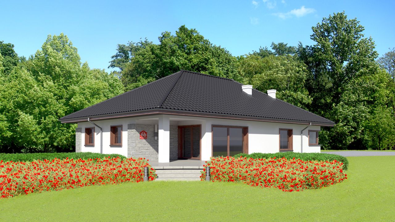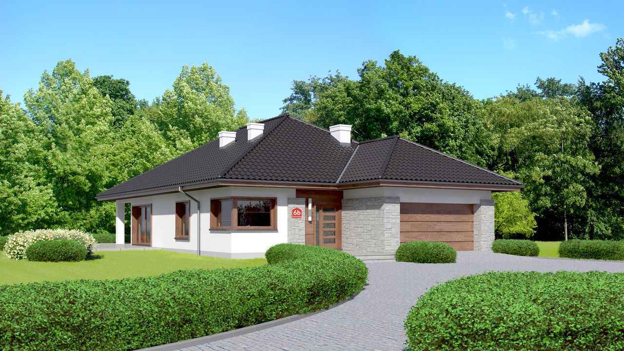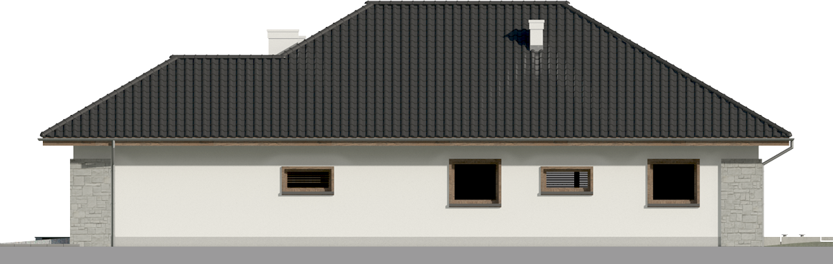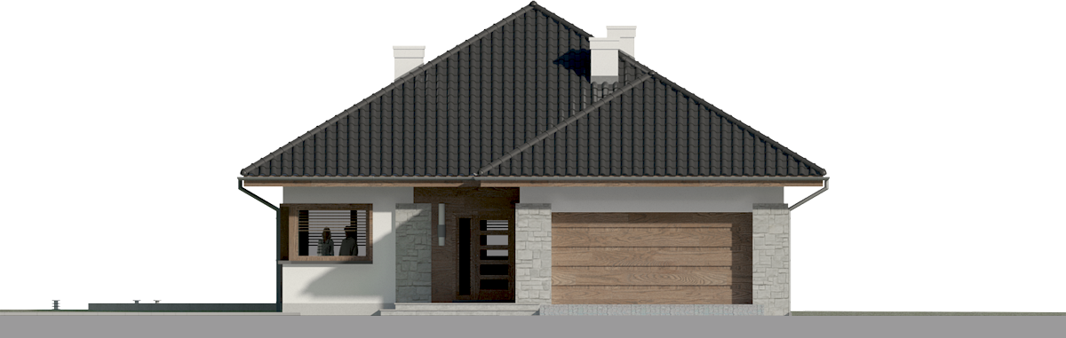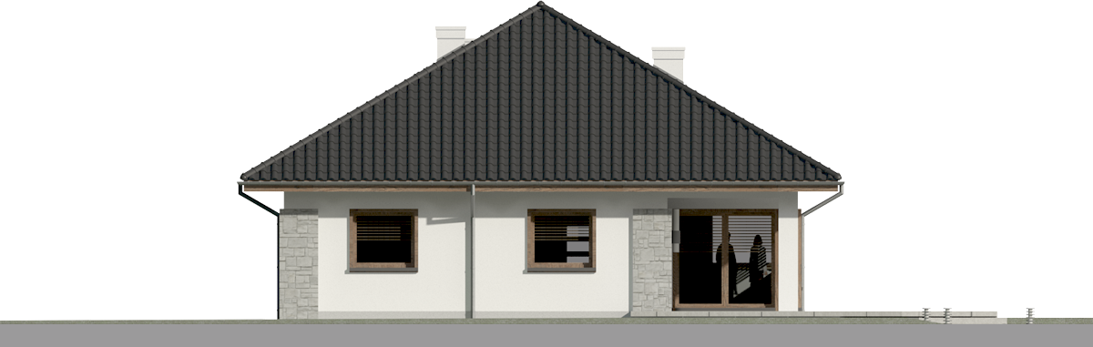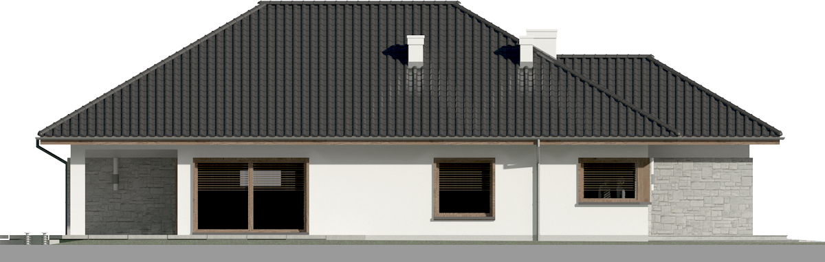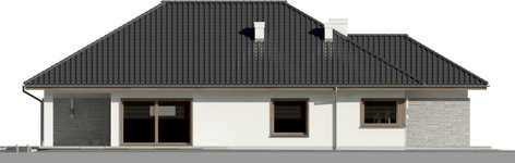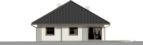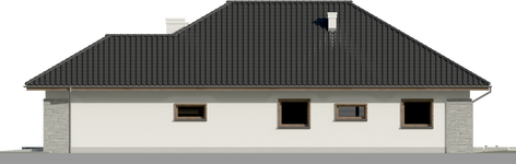 Graficzne opracowanie rzutów poglądowych widocznych na karcie projektu zostało wykonane przez Extradom.pl. Prezentowane przez Extradom.pl wizualizacje wykonane zostały przez autora projektu i należy poczytywać je jedynie za przykład i propozycję wykończenia, wizję architektoniczną autora projektu. Ostateczne wykończenie budynku może nastąpić na wiele sposobów. Szczegółowe rozwiązania zastosowane w oferowanej dokumentacji - w tym również ilość, lokalizacje i wygląd okien, drzwi, kominów - mogą w niewielkim stopniu różnić się od prezentowanej wizualizacji budynku.