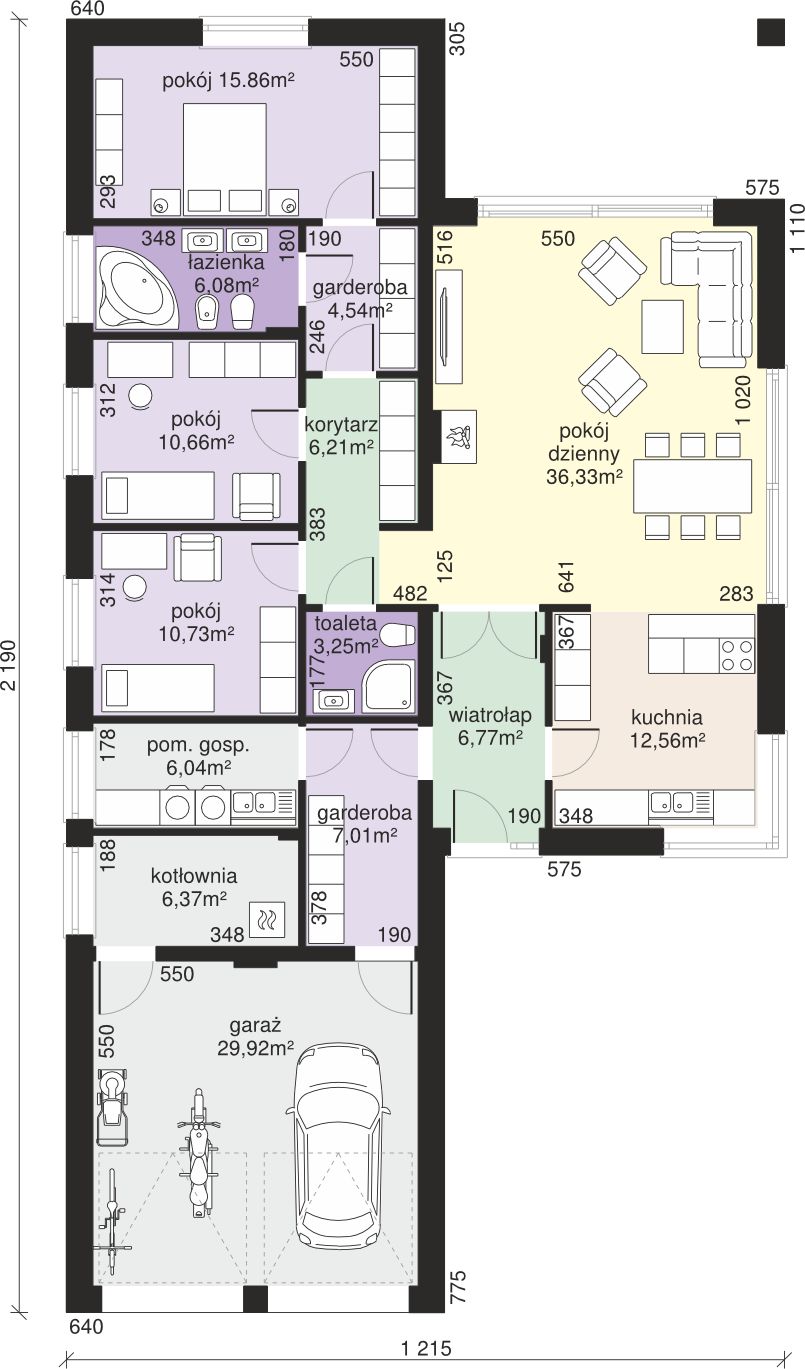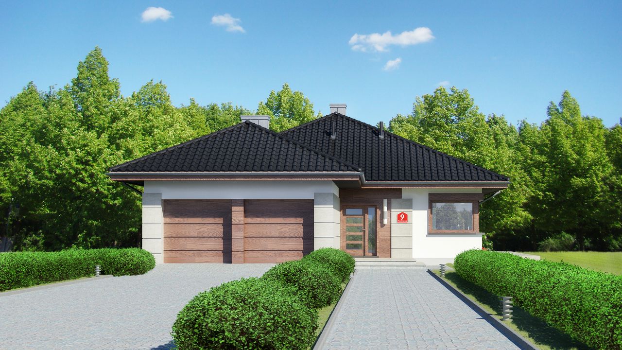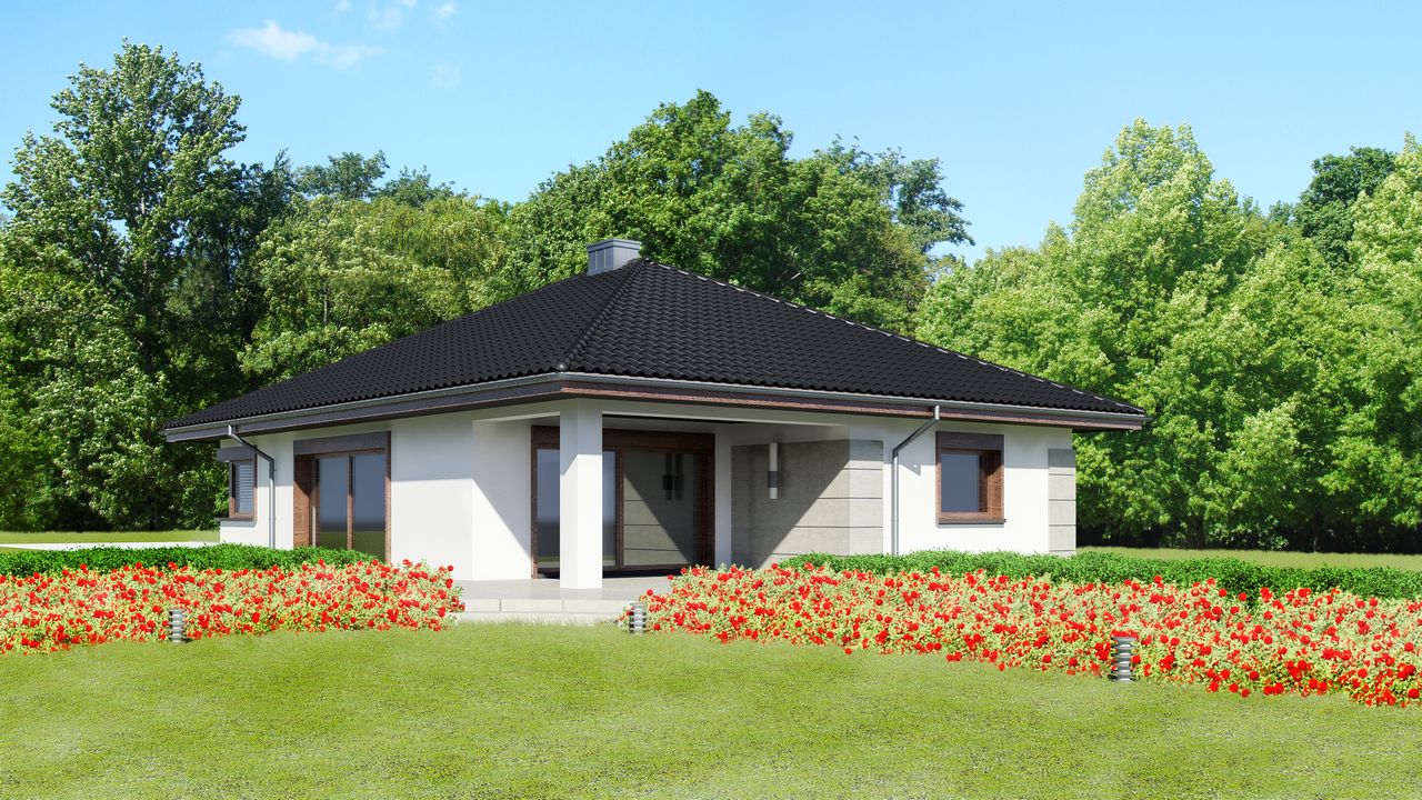 Graficzne opracowanie rzutów poglądowych widocznych na karcie projektu zostało wykonane przez Extradom.pl. Prezentowane przez Extradom.pl wizualizacje wykonane zostały przez autora projektu i należy poczytywać je jedynie za przykład i propozycję wykończenia, wizję architektoniczną autora projektu. Ostateczne wykończenie budynku może nastąpić na wiele sposobów. Szczegółowe rozwiązania zastosowane w oferowanej dokumentacji - w tym również ilość, lokalizacje i wygląd okien, drzwi, kominów - mogą w niewielkim stopniu różnić się od prezentowanej wizualizacji budynku.